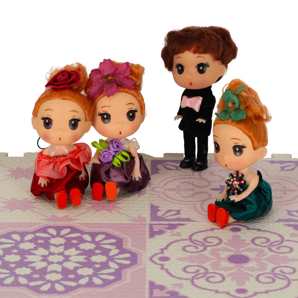 Urocze laleczki, starannie wykonane, będą doskonałym dodatkiem do każdego domku dla lalek. W zestawie znajdują się cztery laleczki: trzy dziewczynki i jeden chłopczyk.