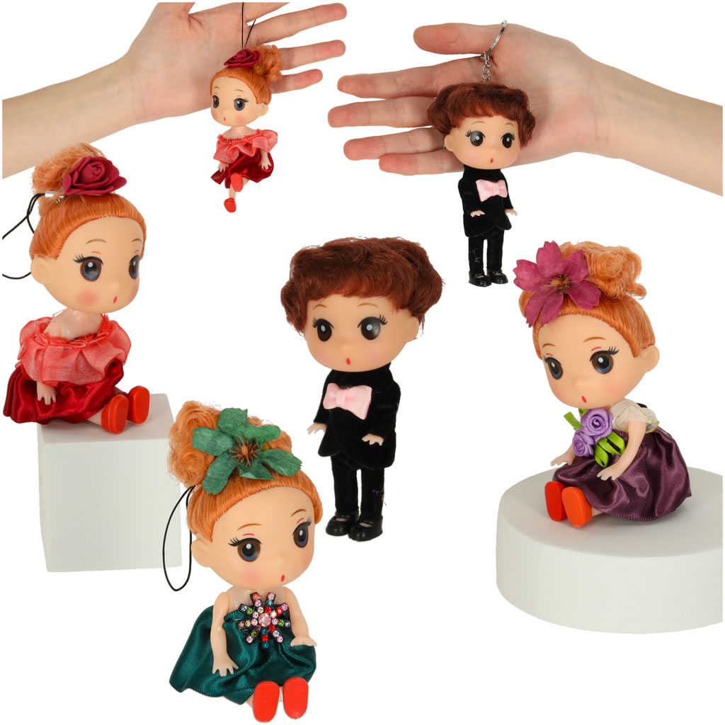 Te małe laleczki świetnie sprawdzą się także jako breloczki. Z tyłu główki znajdują się metalowe zawieszki, które umożliwiają ich przyczepienie do kluczy, plecaka czy torebki. Estetyczne wykonanie oraz atrakcyjny wygląd z pewnością przyciągną uwagę najmłodszych i zachęcą do zabawy.