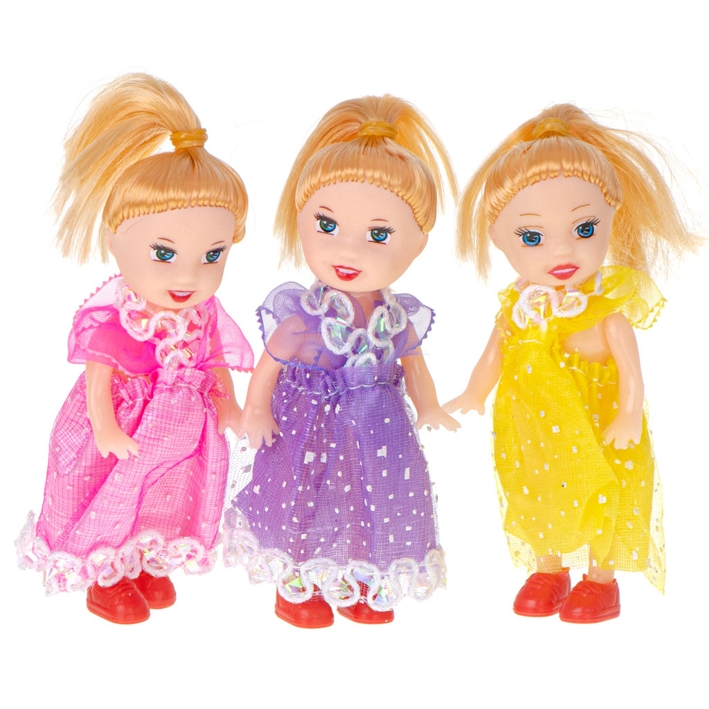 Cudowne małe laleczki, które idealnie nadają się do zabawy w domku dla lalek! W zestawie znajdują się trzy laleczki o wysokości 10 cm, które z łatwością zmieszczą się w każdym domku, stojąc obok siebie. Każda lalka ma sukienkę w innym kolorze: różowym, żółtym i fioletowym oraz czerwone buciki.