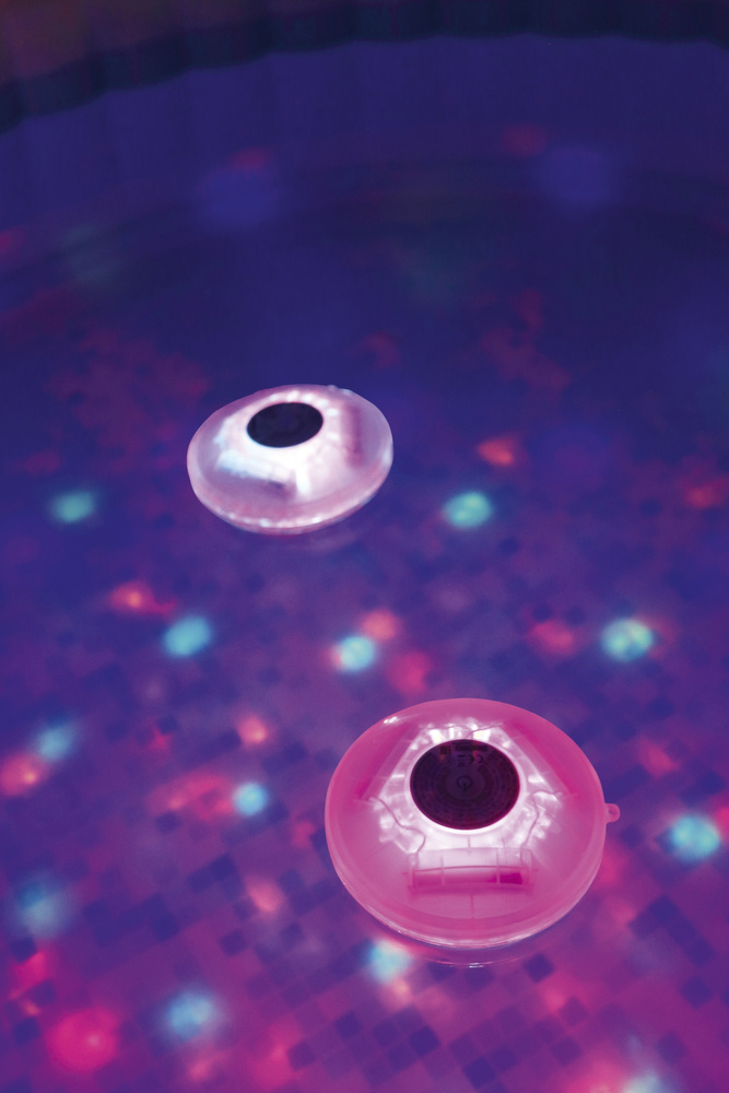 Romantyczny wieczór w basenie ogrodowym? A może szalona zabawa przy blasku zmieniającego się światła? Już teraz dzięki pływającej lampie LED każdy relaks w basenie ogrodowym będzie niepowtarzalny. To nowoczesne urządzenie oferuje cztery barwy światła (czerwony, niebieski, żółty i zielony) i aż siedem trybów migania. Lampa LED jest łatwa w obsłudze, wystarczy włożyć do niej trzy baterie AA (brak w zestawie),umieścić na powierzchni wody i wcisnąć przycisk na górze lampki. Nie potrzebujesz kabli ani podłączenia do źródła energii. To innowacyjny produkt, który delikatnie oświetli powierzchnię wody w obszarze 2,43 m szerokości i głębokość 1,52 m. Automatycznie wyłączy się również po godzinie bezczynności.