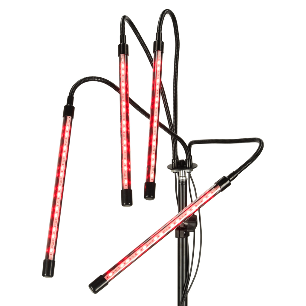 Lampa LED na statywie z czterema ramionami to idealne rozwiązanie dla miłośników roślin. Dzięki regulowanej wysokości oraz ruchomym ramionom, dostosujesz oświetlenie do roślin o różnej wielkości. Emituje światło w trzech barwach, co pozytywnie wpływa na wzrost i wegetację roślin. Dodatkowo, lampa posiada przewodowe oraz zdalne sterowanie, co umożliwia łatwe ustawienie czasu pracy i natężenia światła.