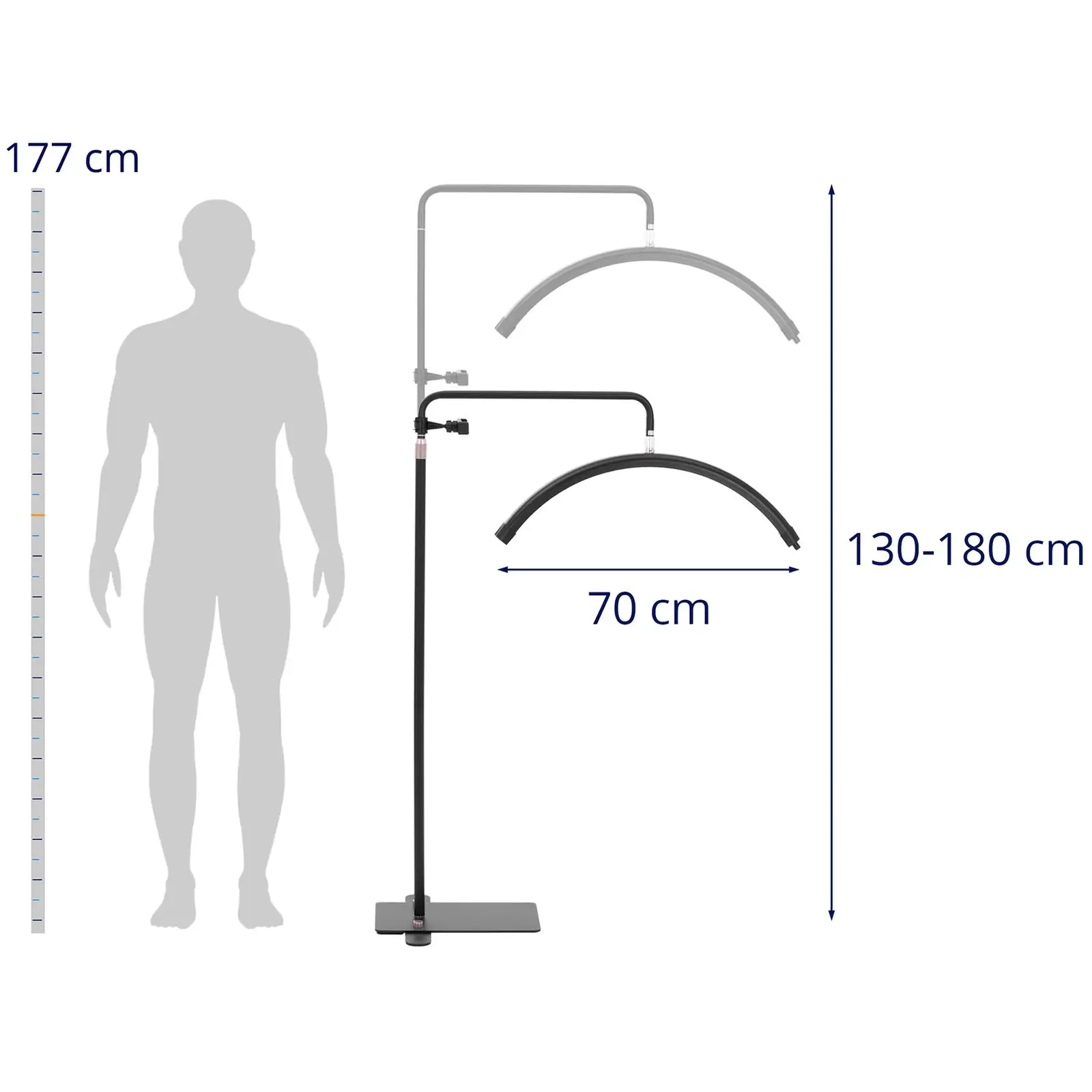Wyposażona w 320 diod LED, lampa oferuje możliwość regulacji jasności w zakresie od 0 do 100% oraz barwy światła od 3000 do 6000 K. Dzięki tym funkcjom możesz dostosować oświetlenie do swoich indywidualnych potrzeb i warunków pracy, co jest kluczowe dla precyzyjnego makijażu.