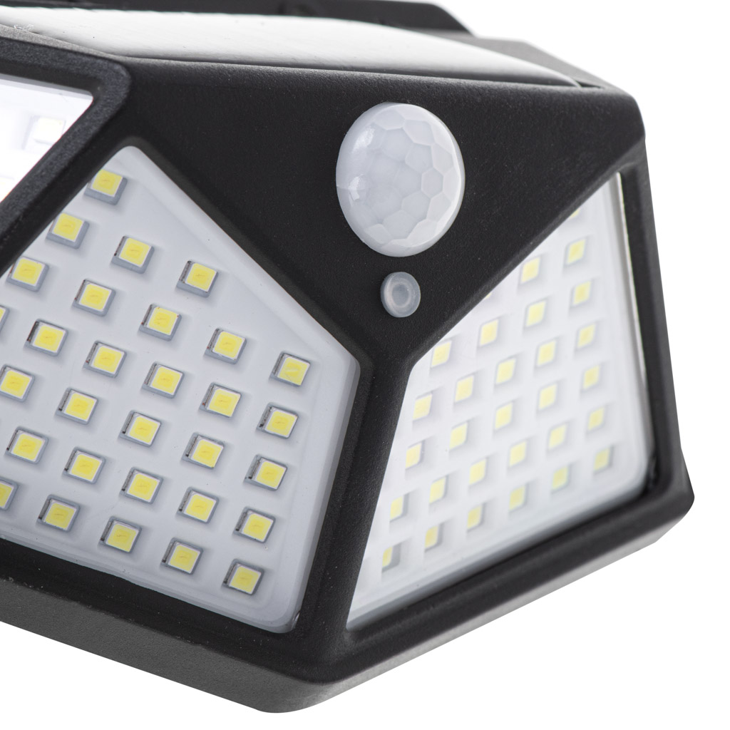 Panel solarny umieszczony na górze lampy współpracuje z czujnikami zmierzchu i ruchu. Główne światło włącza się, gdy czujnik wykryje ruch w zasięgu 3-5 metrów, pokrywając obszar o kącie 120°. Lampa ma trzy tryby pracy: