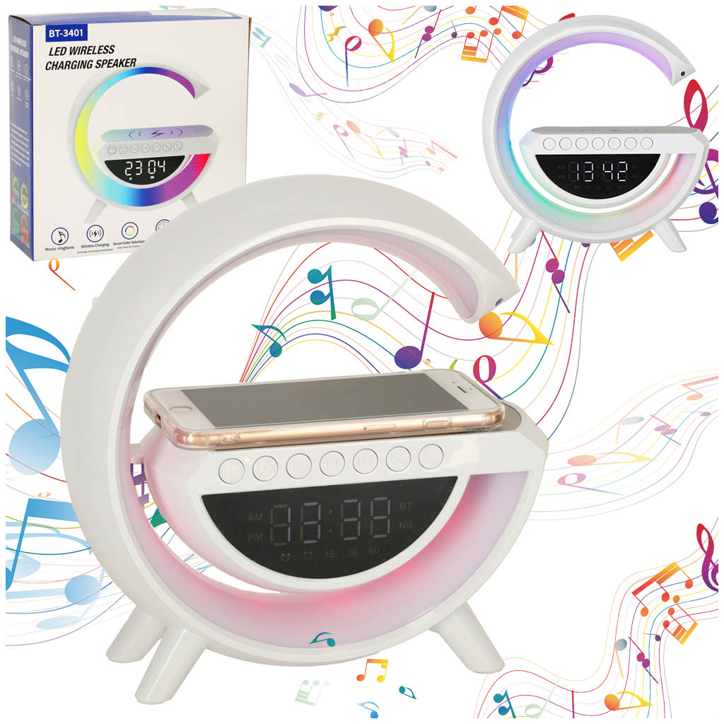 Oferowana lampka LED to wszechstronne urządzenie, które wprowadzi do Twojego wnętrza nowoczesny styl oraz funkcjonalność. Dzięki wielu przydatnym funkcjom, takim jak ładowarka bezprzewodowa, zegar, radio, głośnik, budzik oraz generator białego szumu, staje się idealnym dodatkiem do każdego domu.