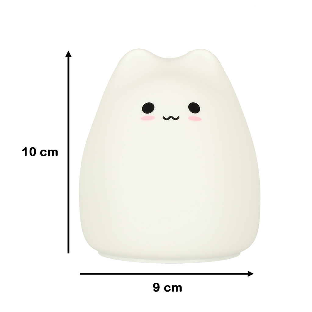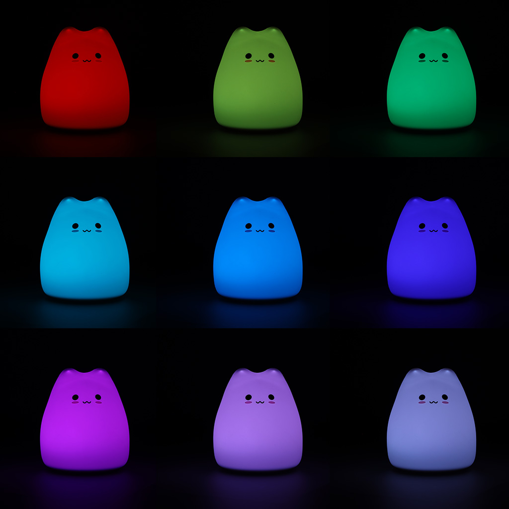Wykonana z elastycznego, przyjemnego w dotyku silikonu, lampka jest odporna na zniekształcenia, które mogą powstać podczas zabawy. Dzięki zasilaniu na baterie, nie musisz martwić się o gniazdka elektryczne. Kotek może towarzyszyć dziecku w każdym miejscu, od łóżka po samochód.