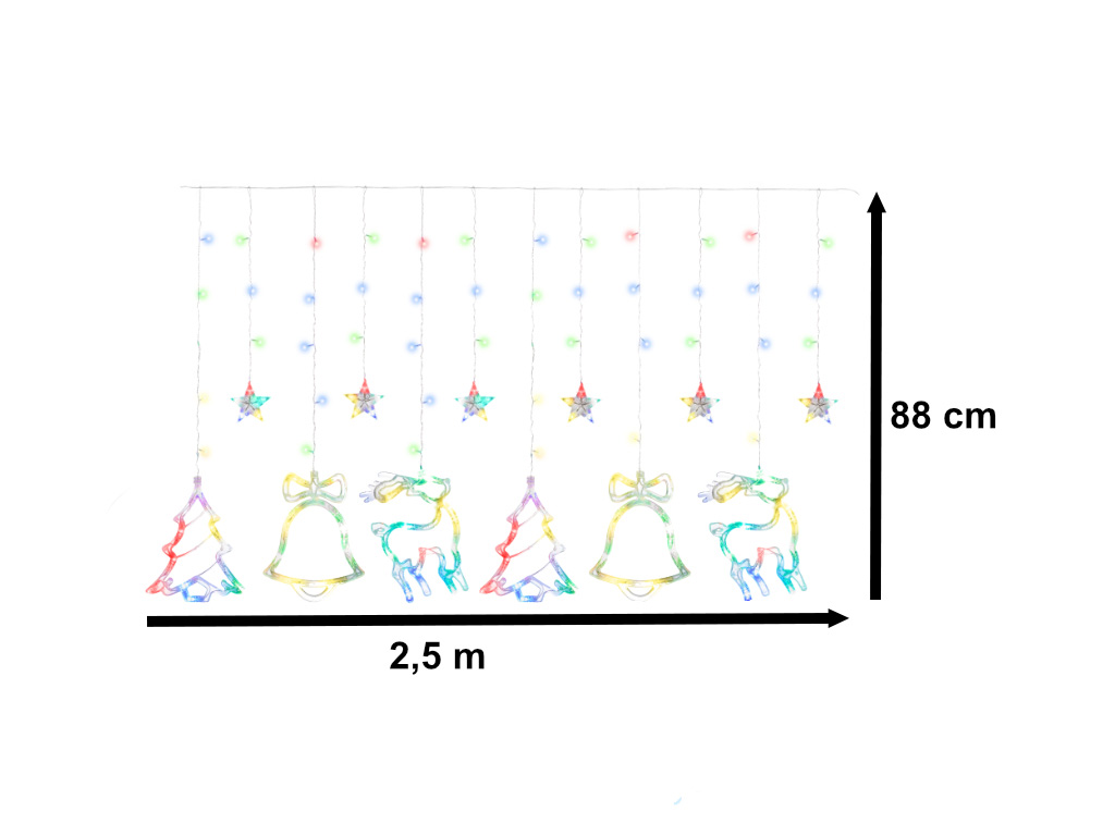 Ozdób swój dom na święta za pomocą wyjątkowych lampek LED! Ta kurtyna świetlna o długości 2,5 metra dostarczy Ci kolorowego i przyjemnego światła dzięki aż 138 diodom LED. Idealnie nadaje się do dekoracji balkonu czy okna, tworząc piękną świąteczną atmosferę.