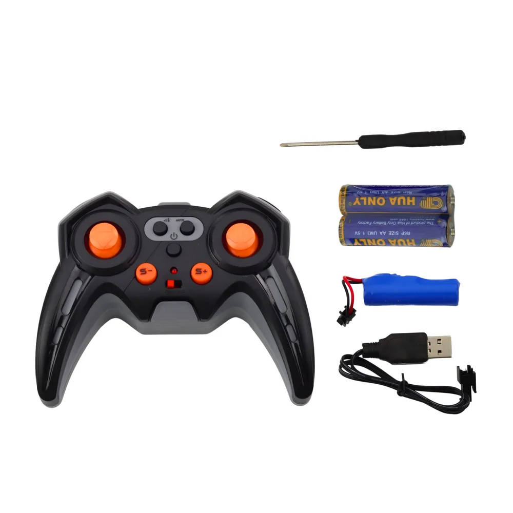 Sterowanie zestawem odbywa się za pomocą wygodnego pilota 2.4GHz, który umożliwia jazdę do przodu, do tyłu, skręty w prawo i lewo, a także aktywację efektów dźwiękowych i świetlnych. Dzięki wysokiej jakości wykonania i dynamicznym funkcjom, zabawka doskonale sprawdza się zarówno podczas zabawy w domu, jak i na świeżym powietrzu – na podwórku, tarasie lub placu zabaw.