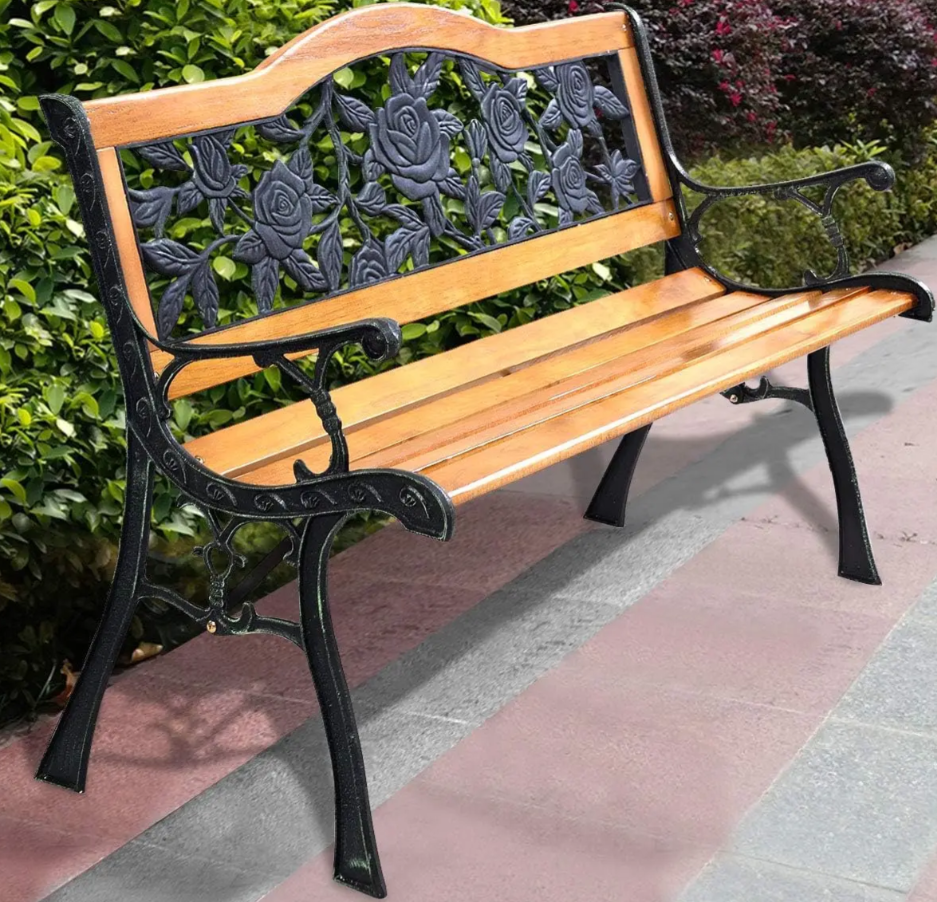 ŁAWKA OGRODOWA DREWNIANA METALOWA ŁAWECZKA PARKOWA Z OPARCIEM