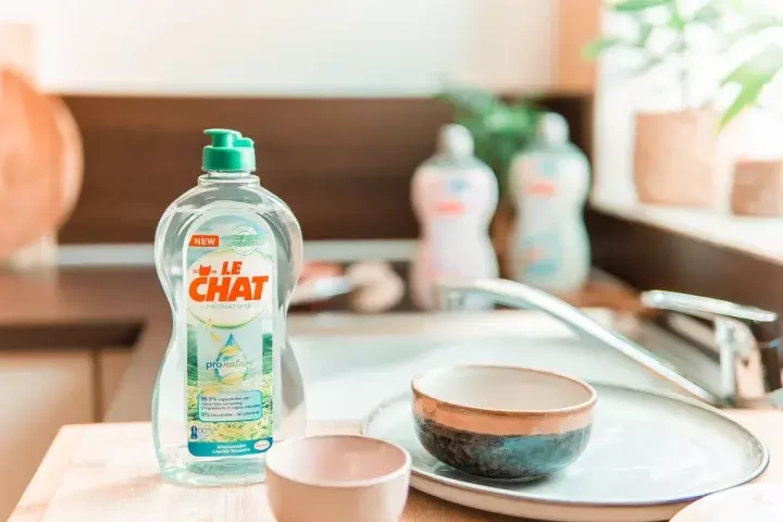 Le Chat Pro Nature to płyn do naczyń stworzony z myślą o wrażliwej skórze. Dzięki 95,5% składników pochodzenia naturalnego, skutecznie zadba o czystość Twoich naczyń, jednocześnie szanując Twoją skórę. Produkt nie zawiera barwników, co sprawia, że jest jeszcze bardziej przyjazny dla użytkowników.