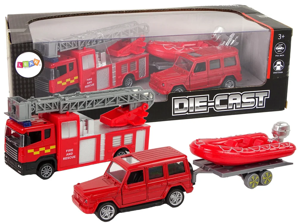 Zestaw Pojazdów Straż Pożarna Naciąg Motorówka Czerwony