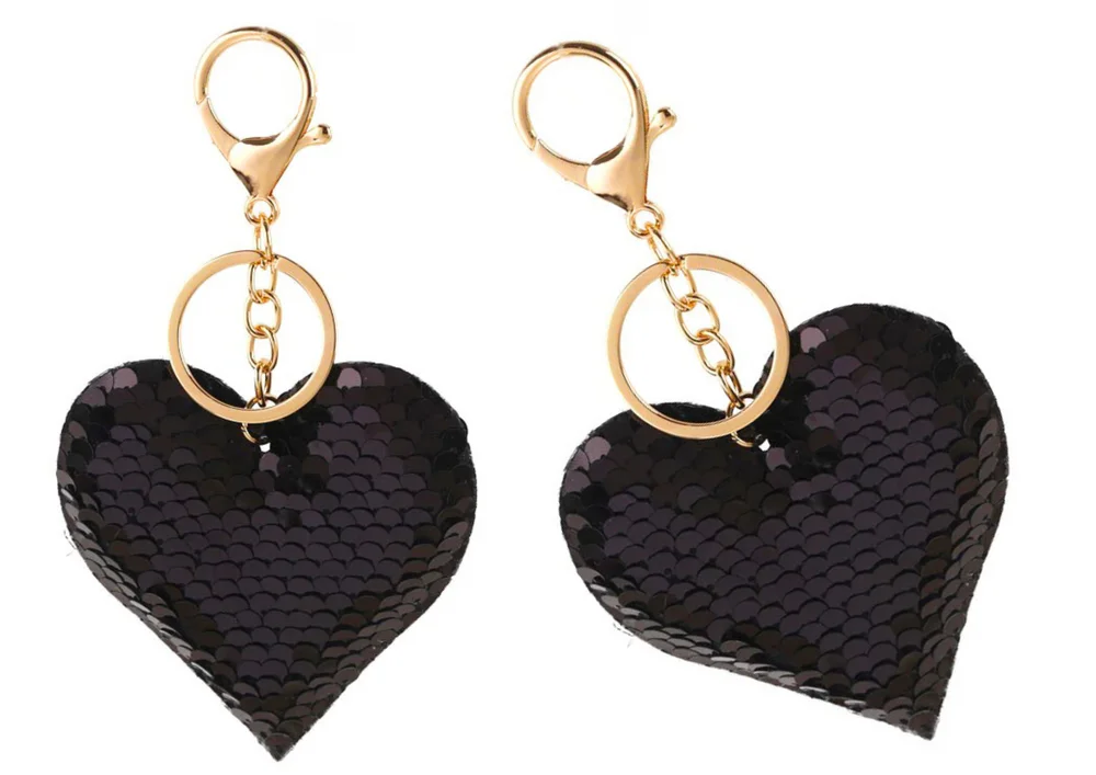 Brelok Serce Cekiny Dwustronne Srebrny Czarny