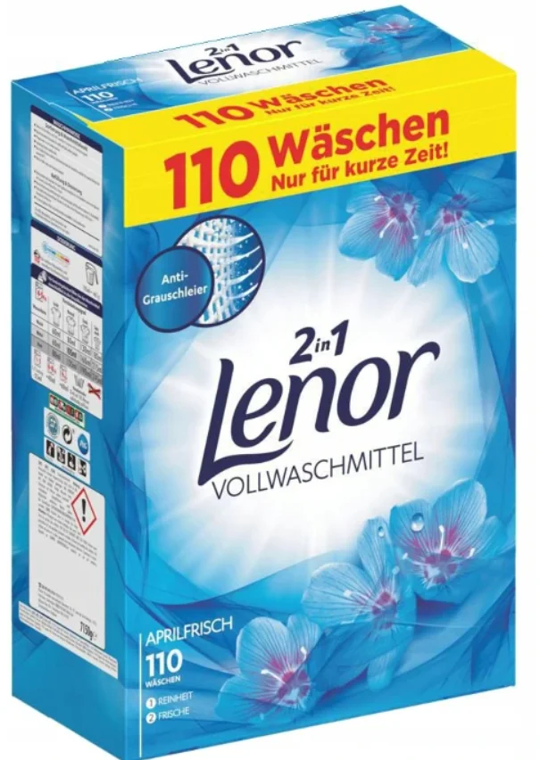 Zapewnij swoim ubraniom czystość i świeżość z proszkiem do prania Lenor Aprilfrisch. Ten silny detergent skutecznie czyści tkaniny, a dodatkowo pozostawia przyjemny zapach wiosennych kwiatów z nutą paczuli i cedru. Dzięki aktywowanej dotykowo technologii perfum, świeżość utrzymuje się na dłużej.