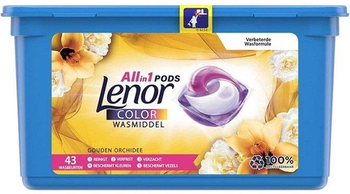 W opakowaniu znajduje się 43 sztuki, co czyni je praktycznym wyborem na dłużej. Kapsułki Lenor Golden Orchid są idealnym uzupełnieniem płynów do zmiękczania tkanin oraz perfum do prania tej samej linii, co dodatkowo potęguje doznania zapachowe.