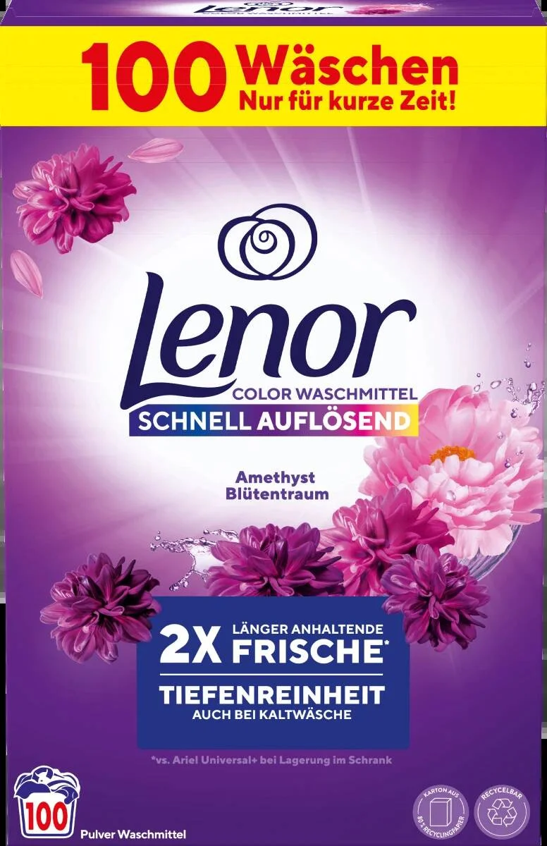 Lenor Color Amethyst Blütentraum to nie tylko piękne zapachy i skuteczna ochrona kolorów, ale także troska o środowisko – opakowanie proszku nadaje się do recyklingu. Dodaj Lenor do swojego koszyka i zadbaj o świeżość oraz wyrazistość kolorów każdego prania!