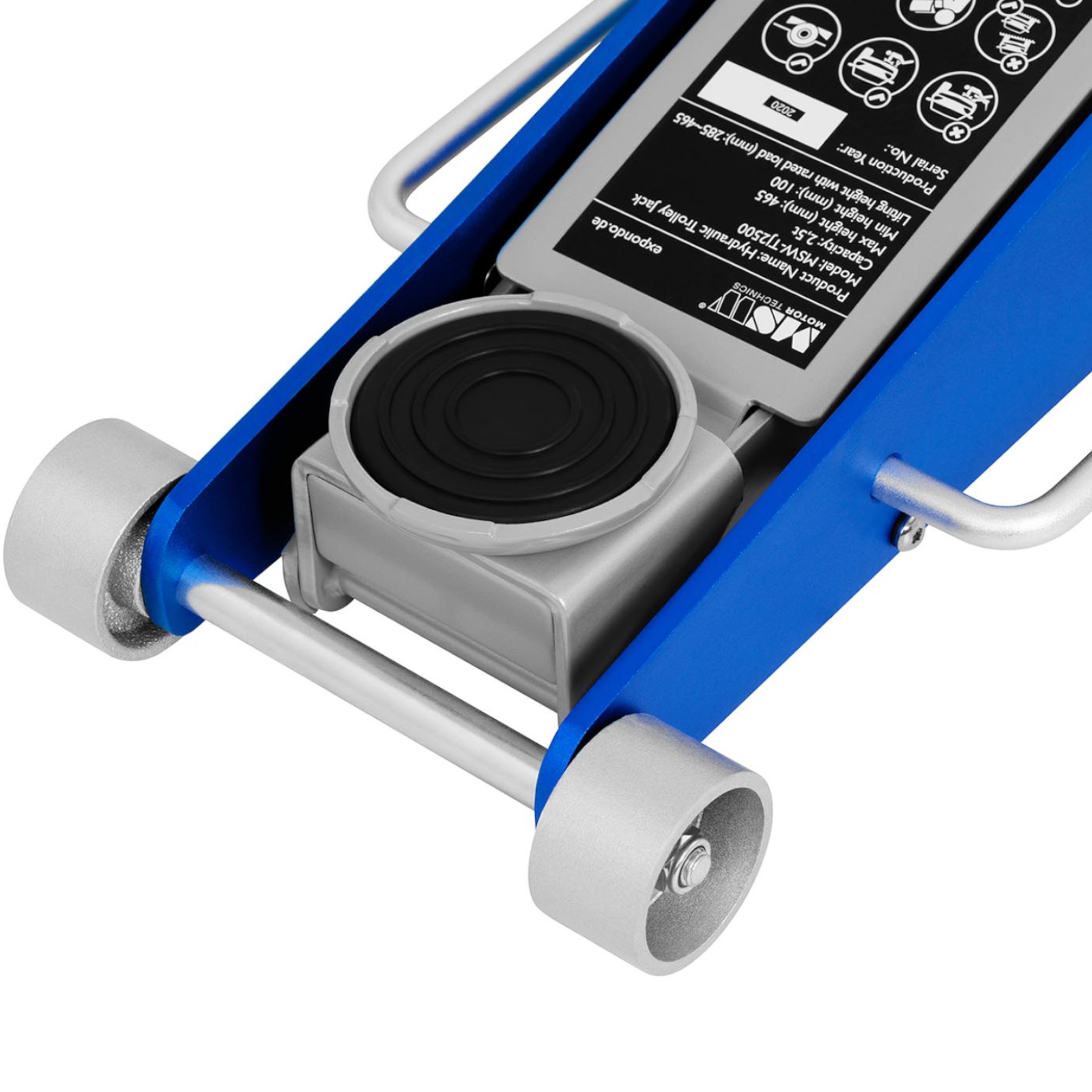 Lewarek ma maksymalne obciążenie do 2500 kg oraz możliwość regulacji wysokości w zakresie od 100 mm do 465 mm. Obsługa podnośnika jest łatwa dzięki dwuczęściowej dźwigni, która pozwala na łatwe ustawienie lewarka na pożądanej wysokości. Podwójna pompa zapewnia szybkie i komfortowe podnoszenie pojazdów.