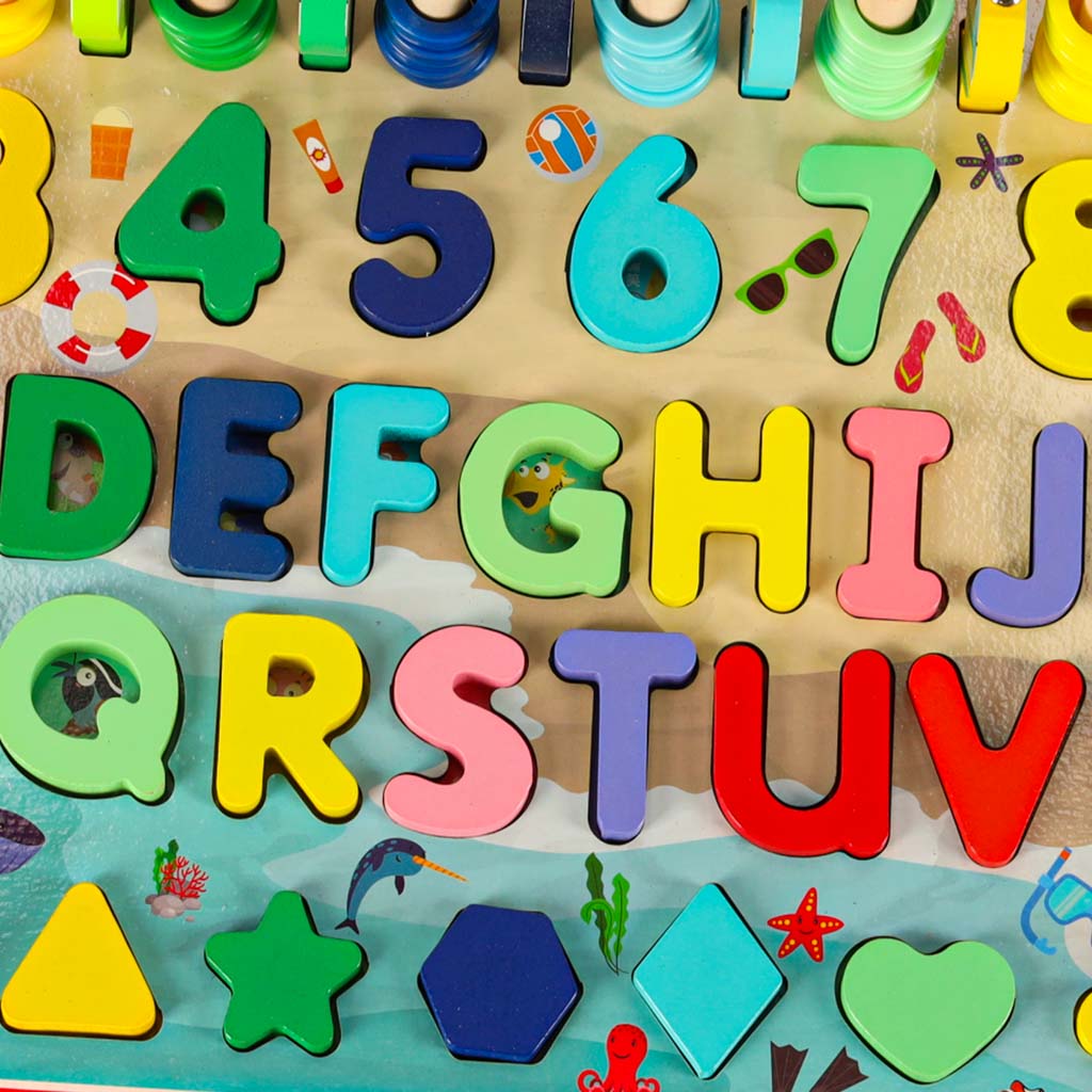 SORTER/UKŁADANKA EDUKACYJNA - dopasuj kształty. W zestawie znajdują się kolorowe figury geometryczne i cyfry, które należy umieścić w odpowiednich otworach. Zabawa uczy rozpoznawania kształtów oraz poznawania cyferek i literek.