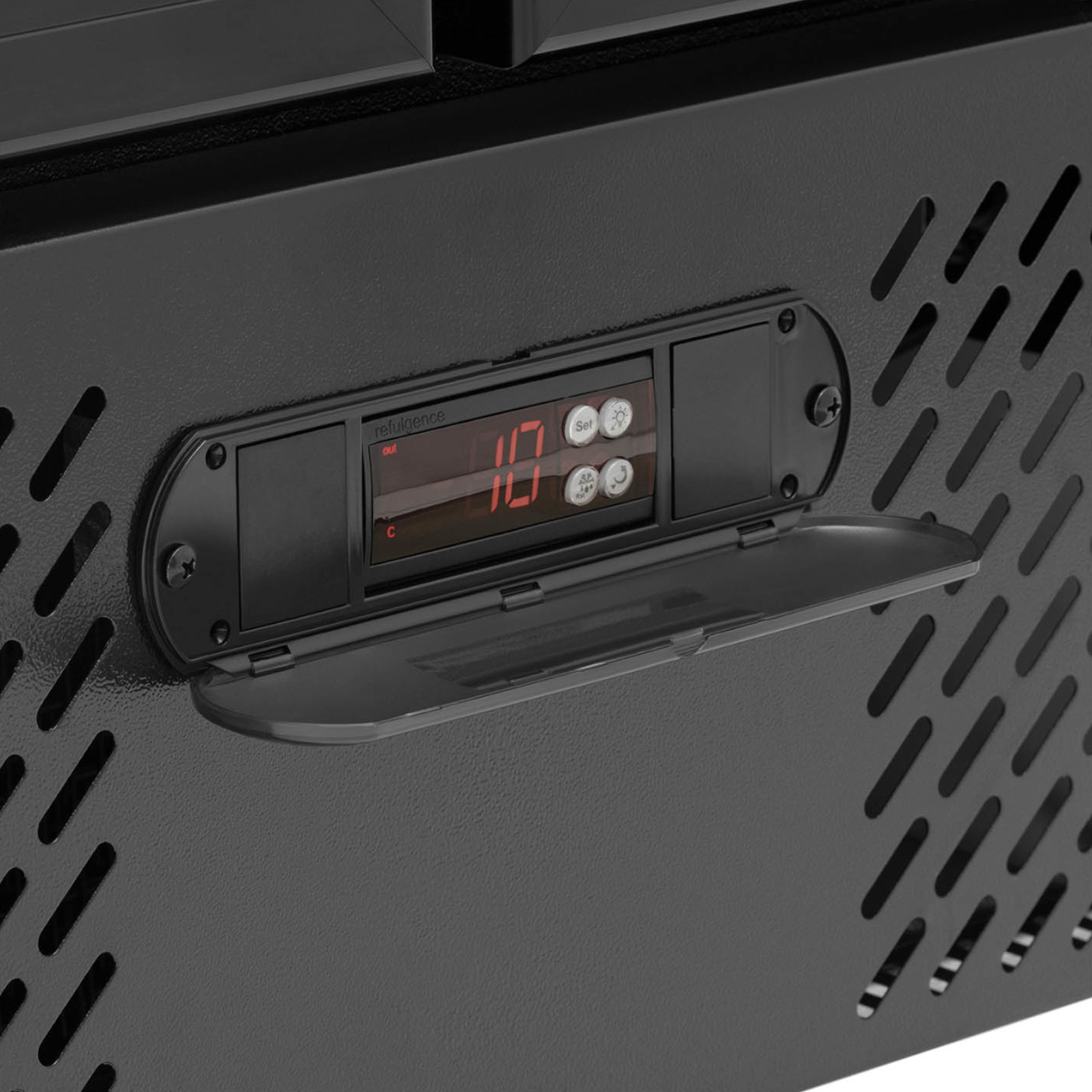 Regulowana wysokość nóżek do 7 mm umożliwia dostosowanie lodówki do nierównej powierzchni. Wewnętrzna obudowa z tłoczonego aluminium oraz zewnętrzna ze stali malowanej proszkowo na kolor czarny chronią urządzenie przed korozją.
