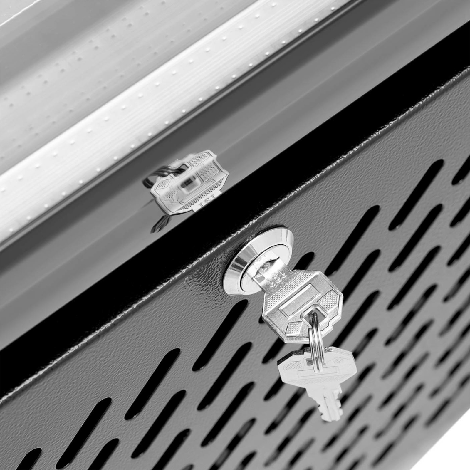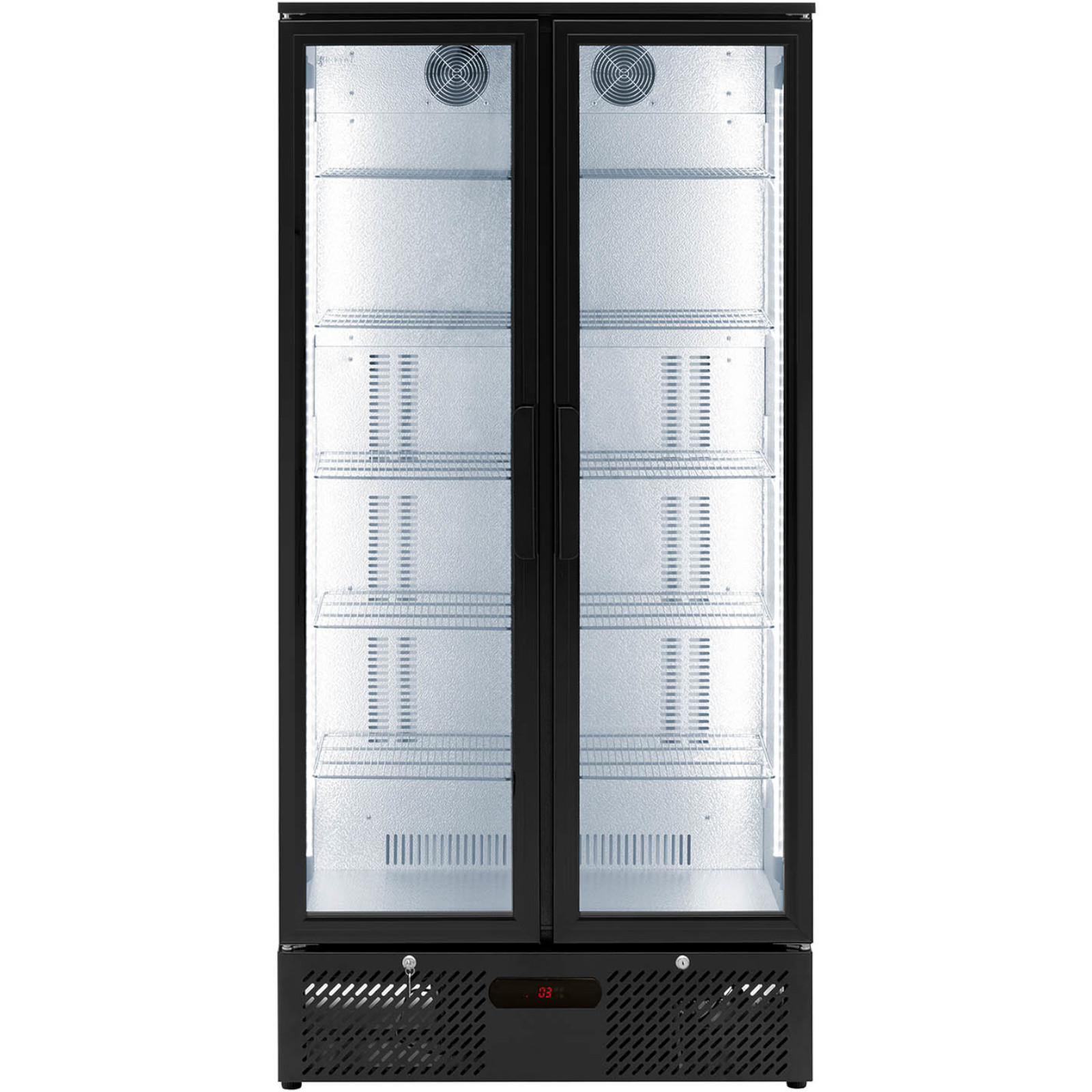 Dwuskrzydłowe drzwi z dwuściennego hartowanego szkła, zamykane automatycznie, utrzymują stałą temperaturę. Dodatkowo, blokada na klucz zapewnia bezpieczeństwo przechowywanych napojów.