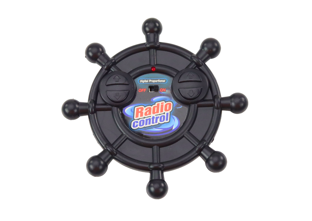Sterowanie odbywa się za pomocą zaawansowanego pilota radiowego o częstotliwości 27 MHz, który zapewnia stabilne połączenie i precyzyjne sterowanie. Dzięki temu dziecko może płynnie manewrować łodzią po wodzie, reagując na każde polecenie z pilota z minimalną opóźnieniem.