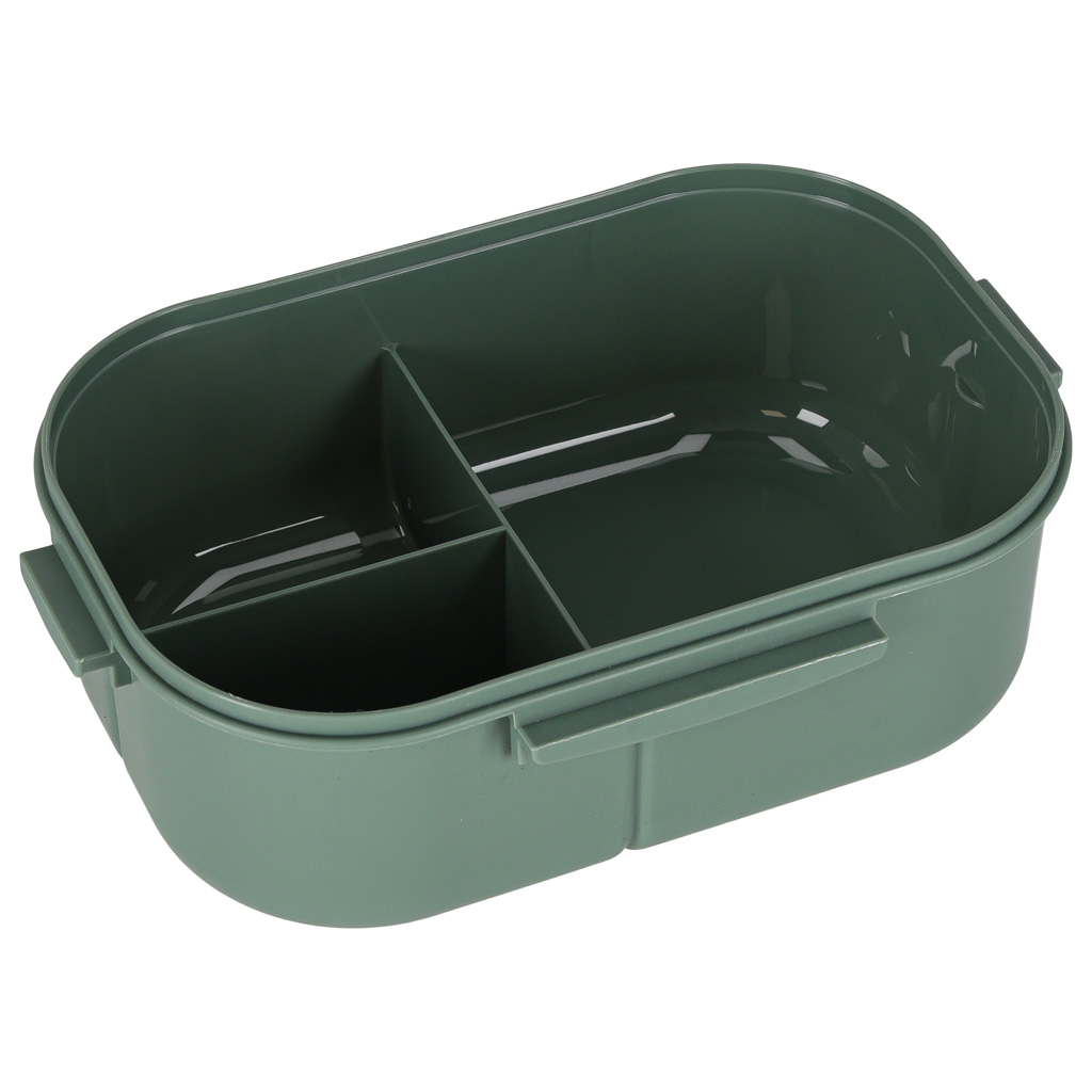 Pokrywka z silikonową uszczelką i czterema bocznymi zatrzaskami gwarantuje, że nic nie wycieknie do torby czy plecaka. Kompaktowy lunchbox zmieści się w plecaku, aktówce czy torbie sportowej. Jest przystosowany do mycia w zmywarce i podgrzewania w mikrofalówce (bez pokrywki).