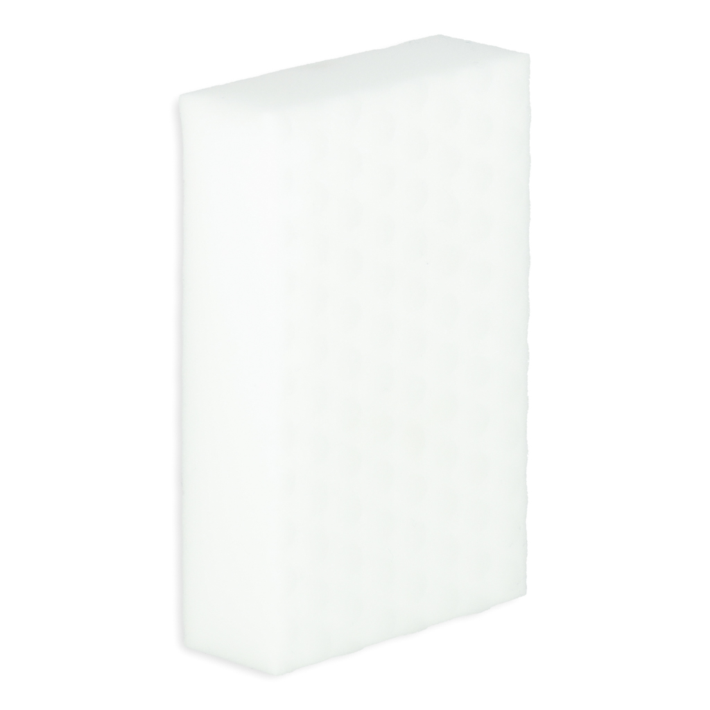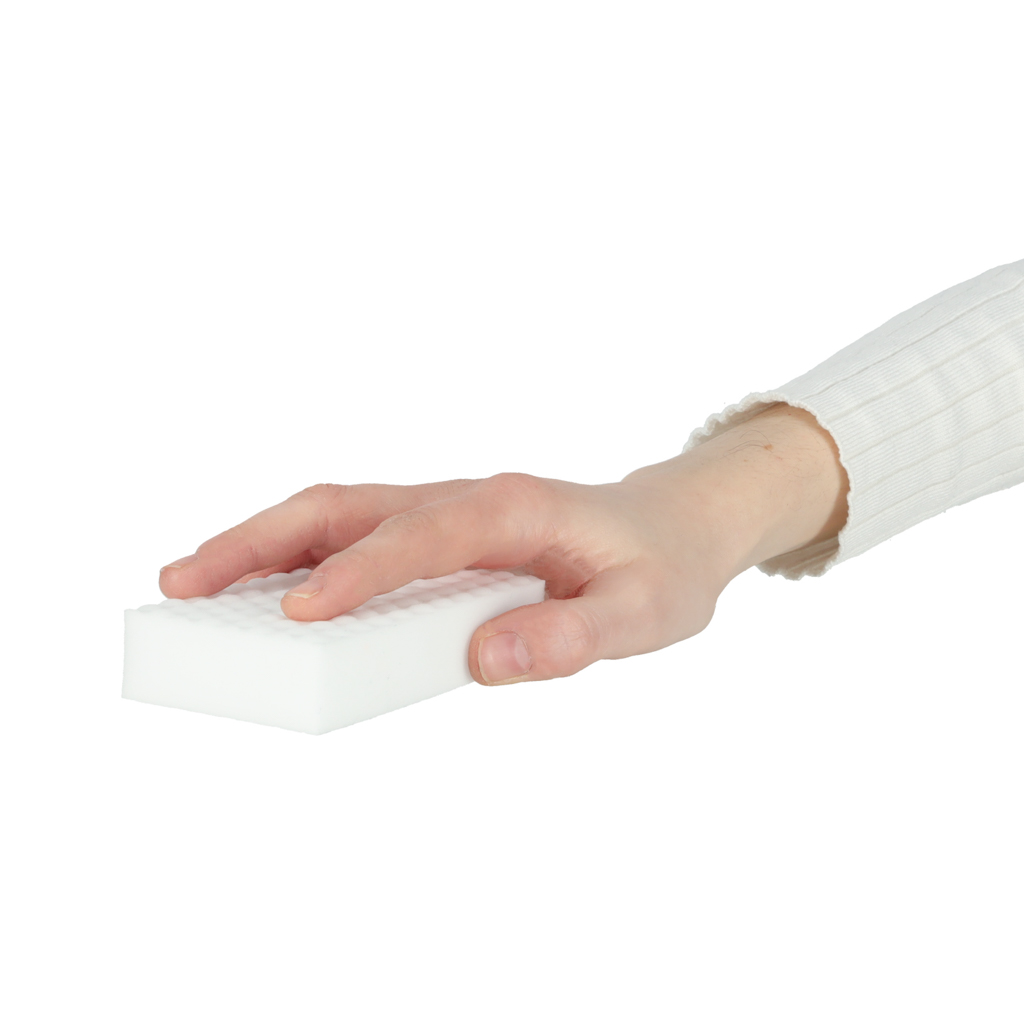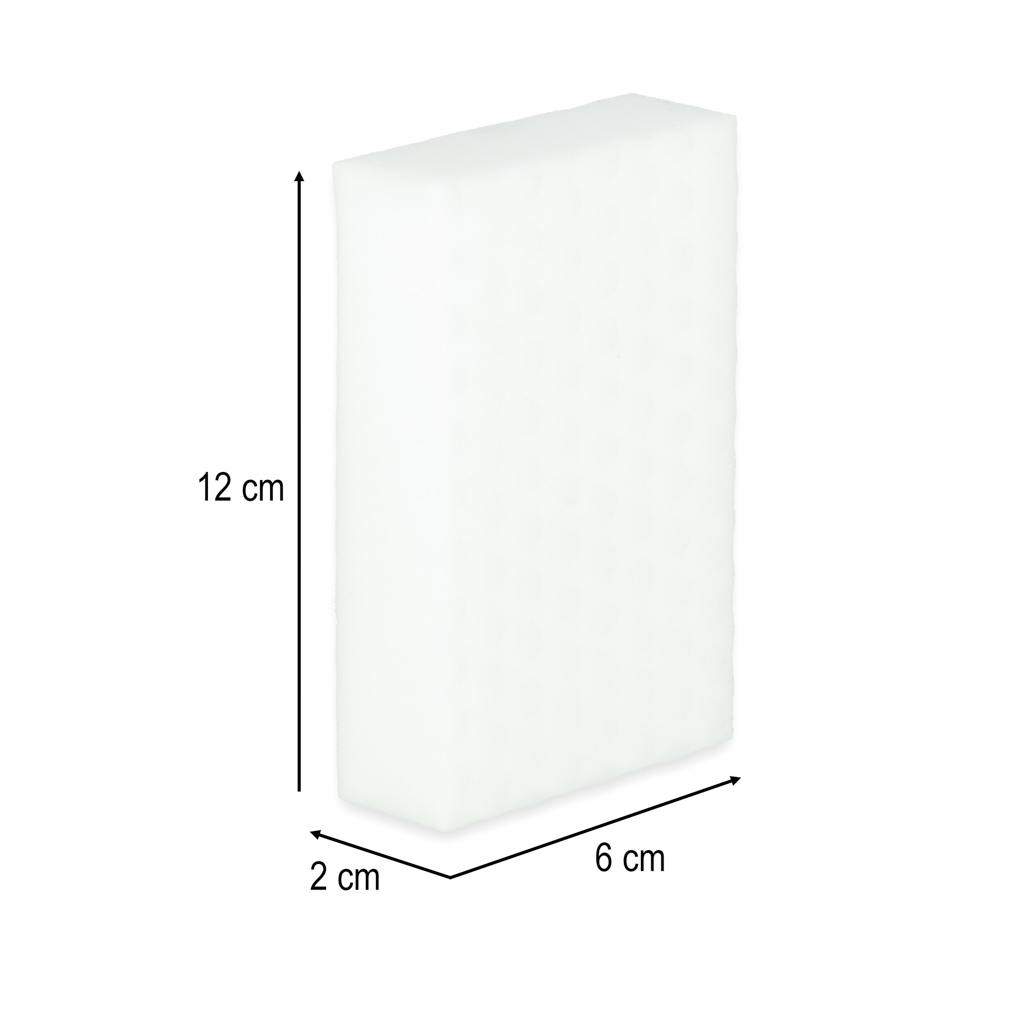 Gąbka ma delikatne właściwości ścierne i zużywa się w miarę czyszczenia, tak jak gumka do ścierania. Z jednej strony jest gładka, a z drugiej posiada delikatne wypustki, co ułatwia mycie chropowatych powierzchni.