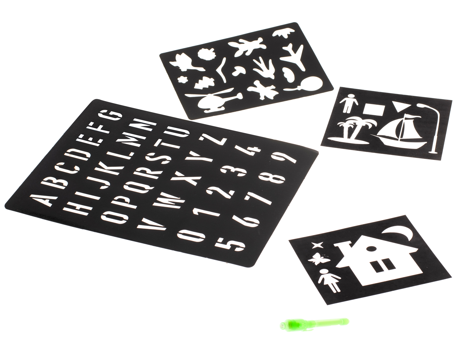 Wszystko, czego potrzebujesz, to zaciemnione pomieszczenie i długopis UV, który znajdziesz w zestawie. Tablica świeci w ciemności, co sprawia, że rysunki są wyjątkowe i magiczne.