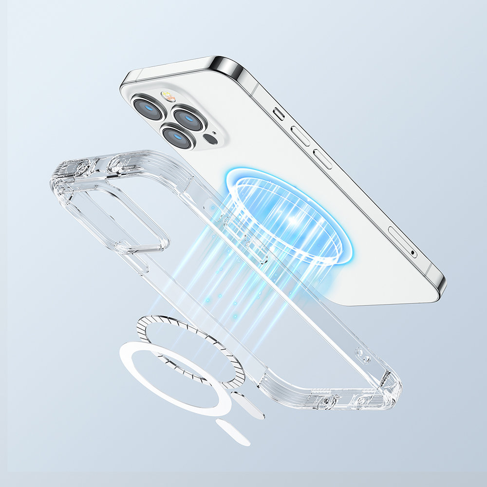 Etui jest kompatybilne z akcesoriami MagSafe, co umożliwia szybkie i proste podłączanie ładowarek bezprzewodowych i innych akcesoriów. Idealnie przylega do urządzenia, eliminując smugi i pęcherzyki powietrza. Wykonane z elastycznego materiału TPU, zapewnia doskonałą ochronę przed pęknięciami i rysami.