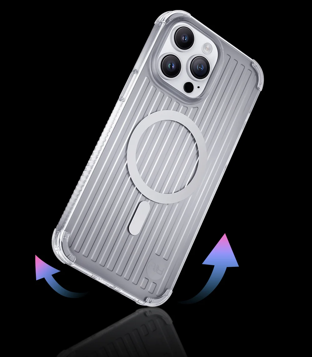 Wykonane z elastycznego materiału TPU, etui zapewnia solidną ochronę przed uszkodzeniami, szczególnie na krawędziach, które zostały wzmocnione. Obsługuje również technologię MagSafe, co pozwala na bezprzewodowe ładowanie bez konieczności zdejmowania etui.