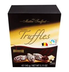 Pralinki Maître Truffout to wyjątkowa uczta dla miłośników słodkości. Te belgijskie trufle z płatkami białej czekolady oferują kremowo-miękki rdzeń z mlecznej czekolady, który zachwyca smakiem. Dzięki certyfikatowi Fairtrade, masz pewność, że wybierasz produkt z etycznego źródła.