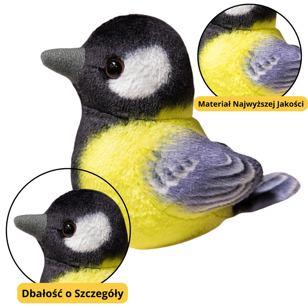 Każdy ptaszek został wykonany z miękkiego, przyjemnego w dotyku pluszu i wyróżnia się starannie odwzorowanymi detalami, które nadają mu realistyczny, ale jednocześnie bajkowy wygląd. Kompaktowe rozmiary sprawiają, że idealnie nadają się do małych rączek – są lekkie, poręczne i wygodne do zabawy, kolekcjonowania czy dekoracji dziecięcego pokoju.