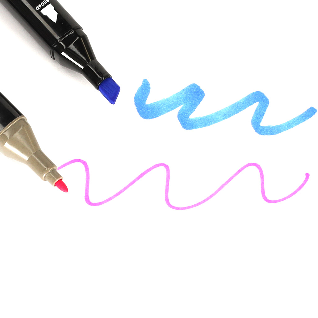 Każdy marker ma dwie końcówki: szeroką, która sprawdzi się przy zamalowywaniu większych powierzchni oraz cienką, idealną do tworzenia precyzyjnych linii. Dzięki odpowiednio dobranej końcówce, możesz uzyskać szczegółowość lub lepsze pokrycie rysunku.