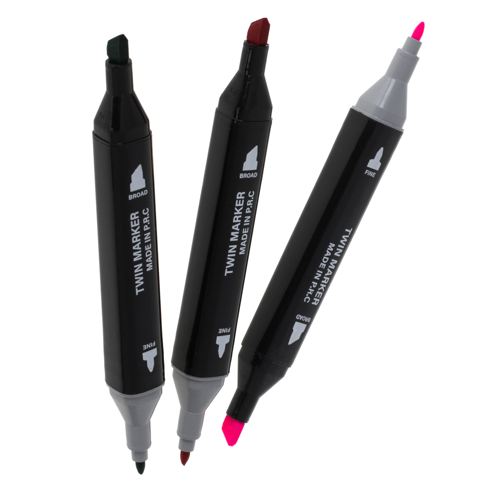 Każdy marker ma dwie końcówki: szeroką, idealną do zamalowywania większych powierzchni oraz cienką, do precyzyjnego rysowania szczegółów. Odpowiednia końcówka pozwoli na dokładne odwzorowanie zamierzeń artystycznych.