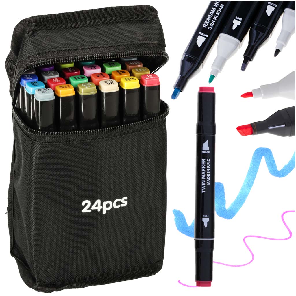 W zestawie znajduje się 24 markery, które sprawdzą się zarówno dla architektów, grafików, jak i początkujących ilustratorów. Dzięki nim możesz rysować, pisać, ilustrować, szkicować, cieniować oraz kolorować.