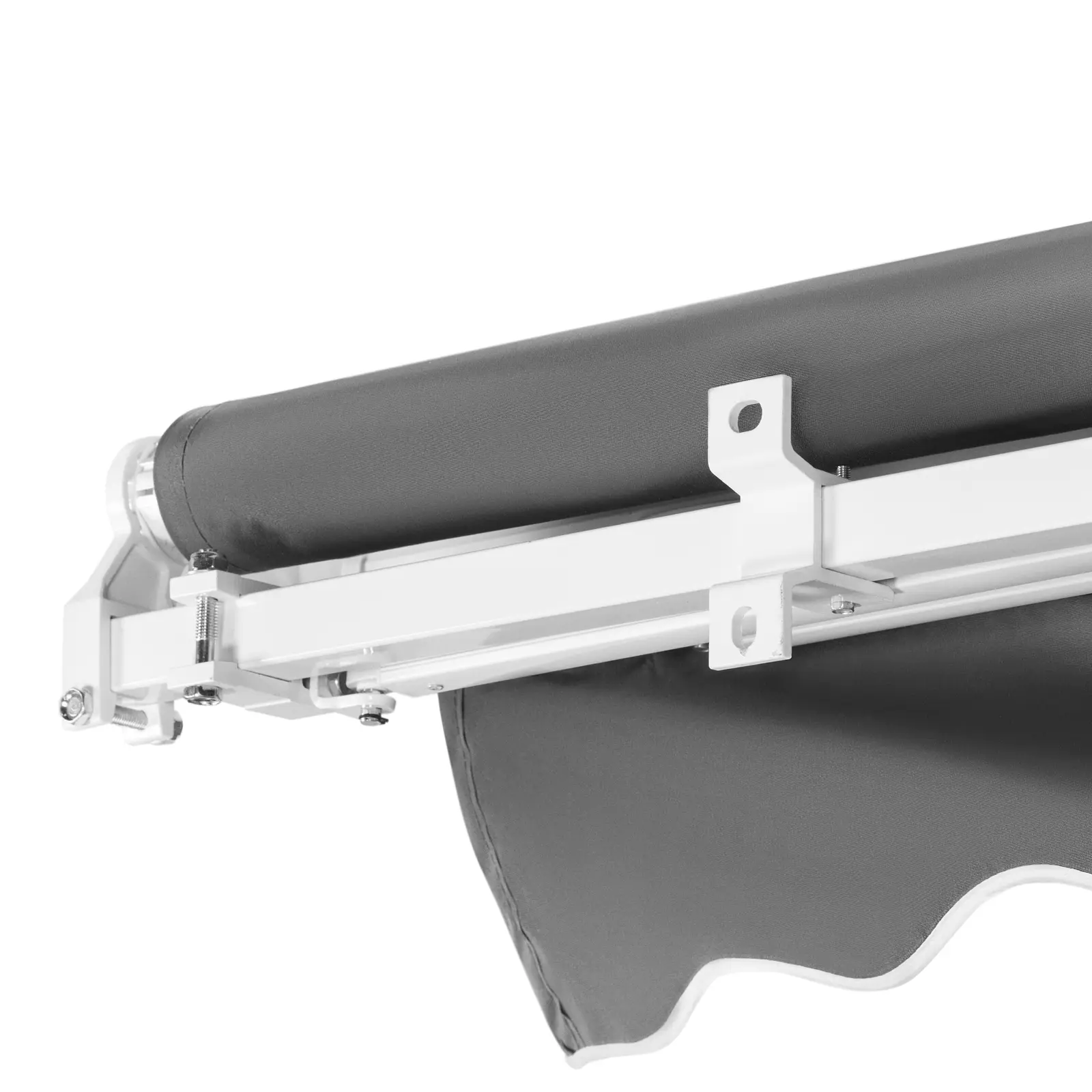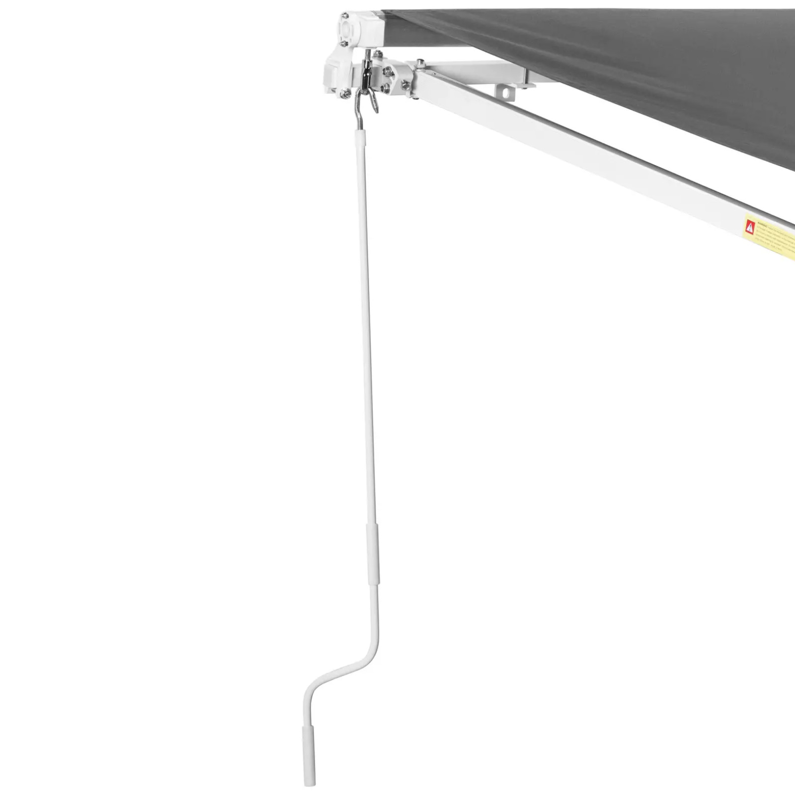 Markiza wyposażona jest w aluminiowe ramię przegubowe, które umożliwia naciągnięcie tkaniny w wybranym obszarze. Ręczna korba pozwala na płynne rozwijanie materiału w zależności od potrzeb, co sprawia, że można indywidualnie dostosować zacienienie.