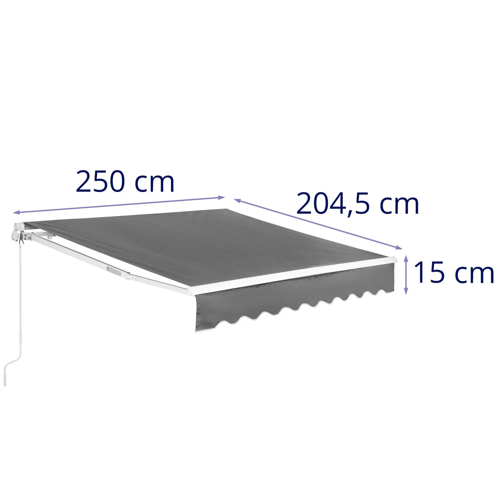 Markiza o wymiarach 200 x 250 cm skutecznie chroni przed słońcem oraz drobnymi opadami deszczu. Gęsta tkanina zapewnia prywatność, co pozwala na swobodne relaksowanie się na świeżym powietrzu. Wykonana z poliestru o gramaturze 280 g/m², materiał ten jest odporny na promieniowanie UV, co chroni meble przed nadmiernym nasłonecznieniem.