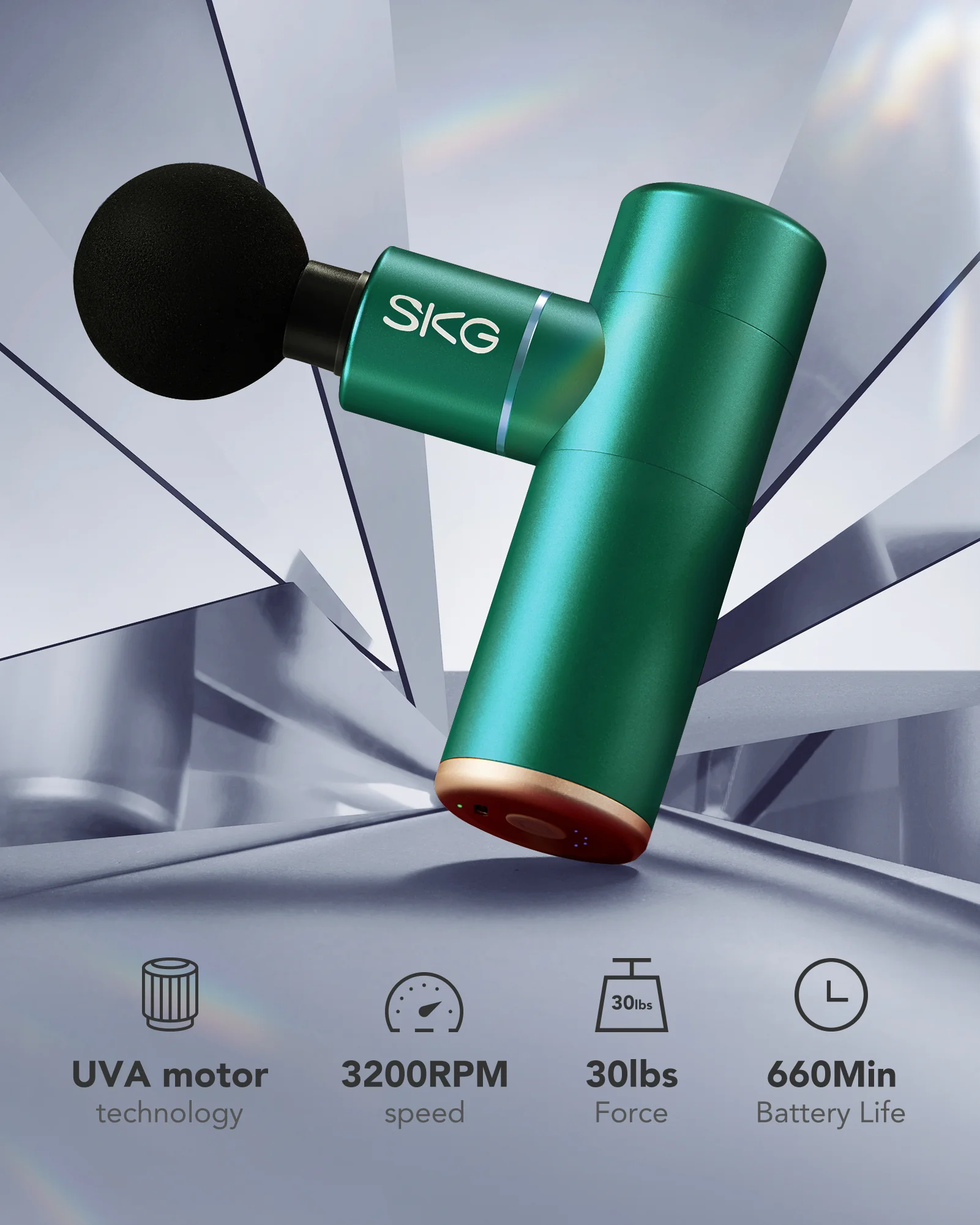 Masażer pistolet do masażu SKG F3-EN - zielony to zaawansowane urządzenie, które zrewolucjonizuje Twoje podejście do relaksacji i regeneracji mięśni. Idealny dla osób poszukujących ulgi w bólu oraz skutecznego rozwiązania na napięcia mięśniowe, ten masażer łączy w sobie nowoczesną technologię z wysoką wydajnością.