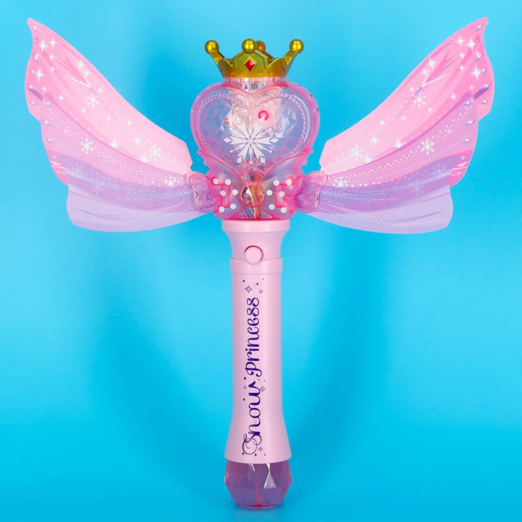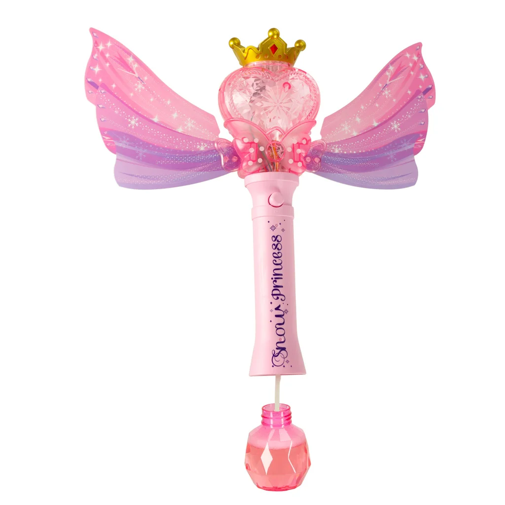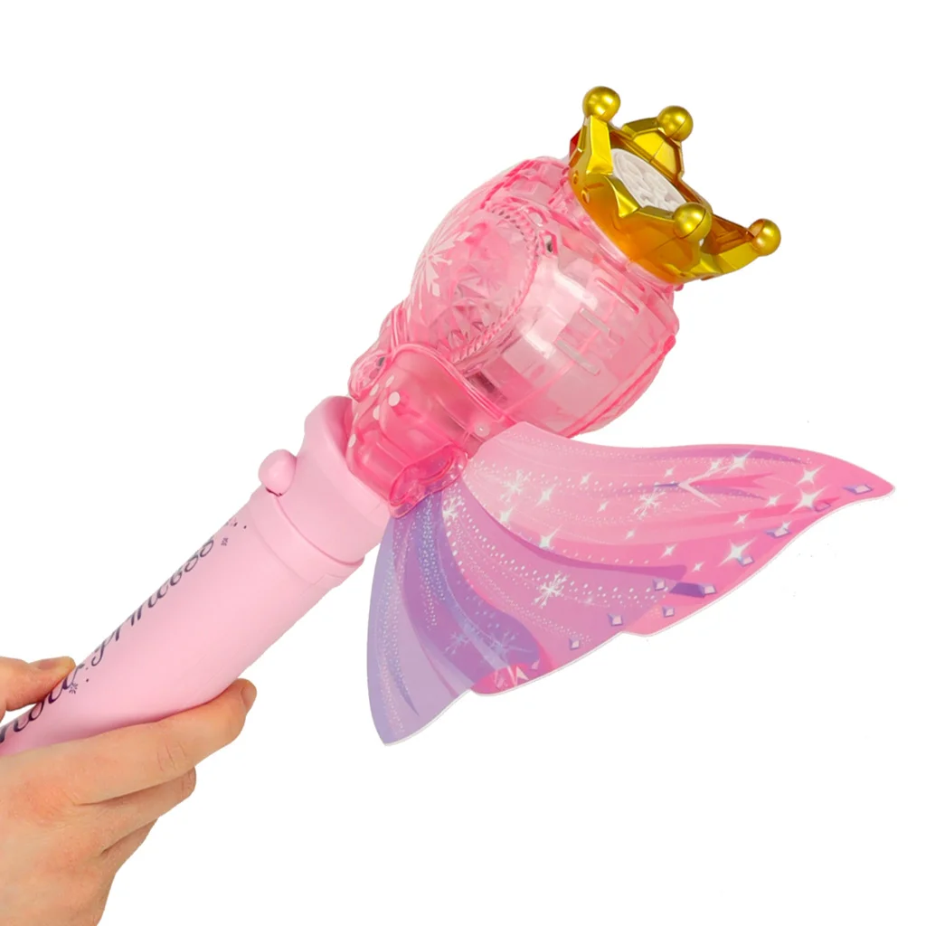 Maszyna do baniek mydlanych Księżniczka Różdżka to doskonały sposób na świetną zabawę dla dzieci w każdym wieku. Dzięki prostemu w obsłudze przyciskowi, wystarczy nacisnąć raz, aby w mgnieniu oka wyczarować mnóstwo małych baniek mydlanych!