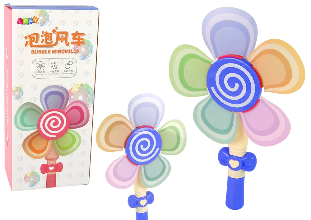 Zabawka jest podobna do kwiatuszka, piękna maszynka z doczepianymi, kolorowymi płatkami, która wytwarza setki baniek. Gwarantuje wspaniałą zabawę w rytm muzyki oraz świateł.