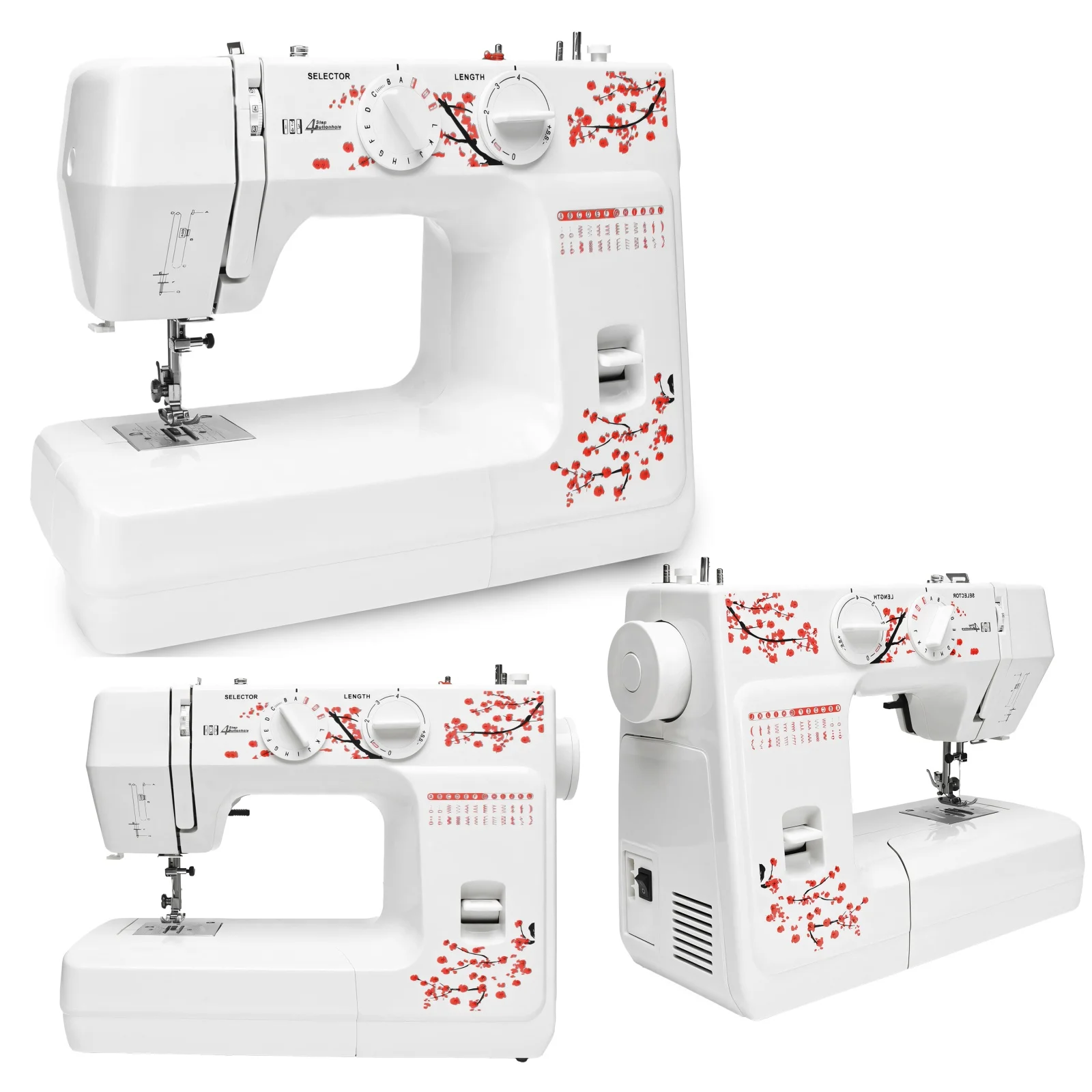 Maszyna charakteryzuje się estetycznym kwiecistym motywem, który nadaje jej wyjątkowego wyglądu.