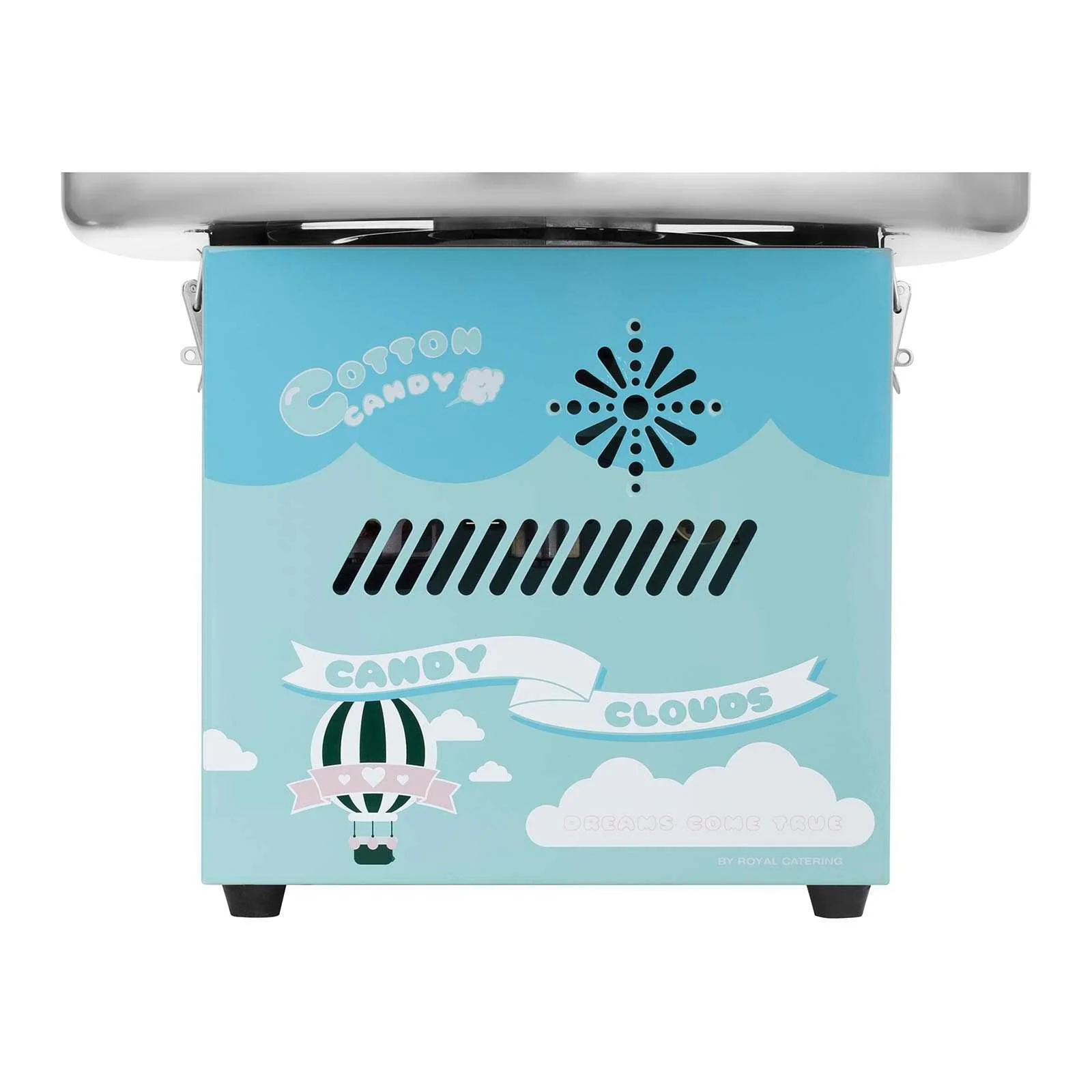 Twórz pyszne desery z turkusową maszyną do waty cukrowej. Dzięki dużej misie o średnicy 520 mm, możesz przygotować watę cukrową w różnych rozmiarach. Wydajny silnik o mocy 1200 W pozwala na szybkie formowanie porcji z 12-18 g cukru w zaledwie 30-60 sekund. W zestawie znajduje się miarka, co ułatwia dozowanie cukru według własnych upodobań.