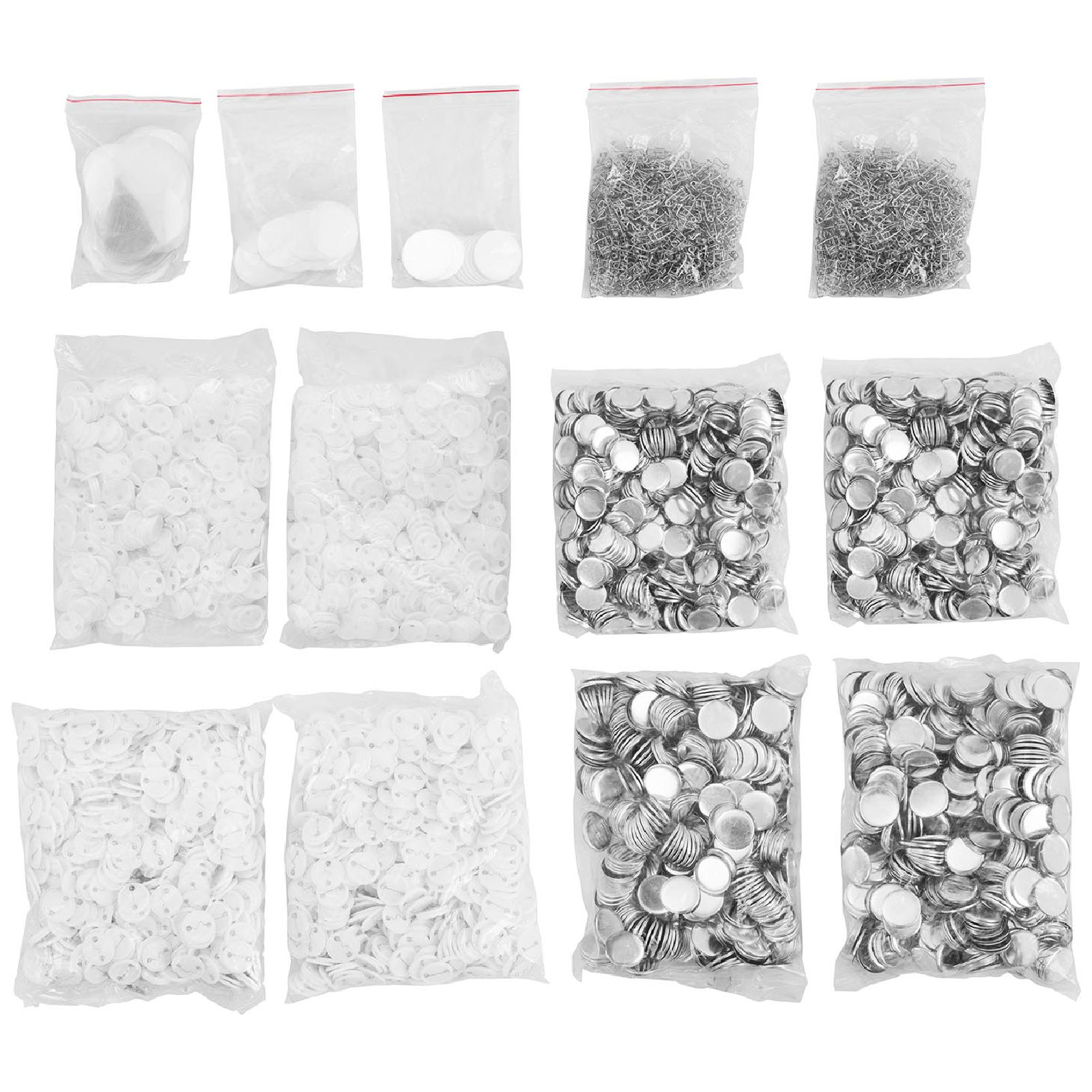W zestawie otrzymujesz maszynkę do przypinek, 2000 sztuk przypinek oraz wycinarkę, co czyni ten produkt kompletnym rozwiązaniem do tworzenia przypinek.