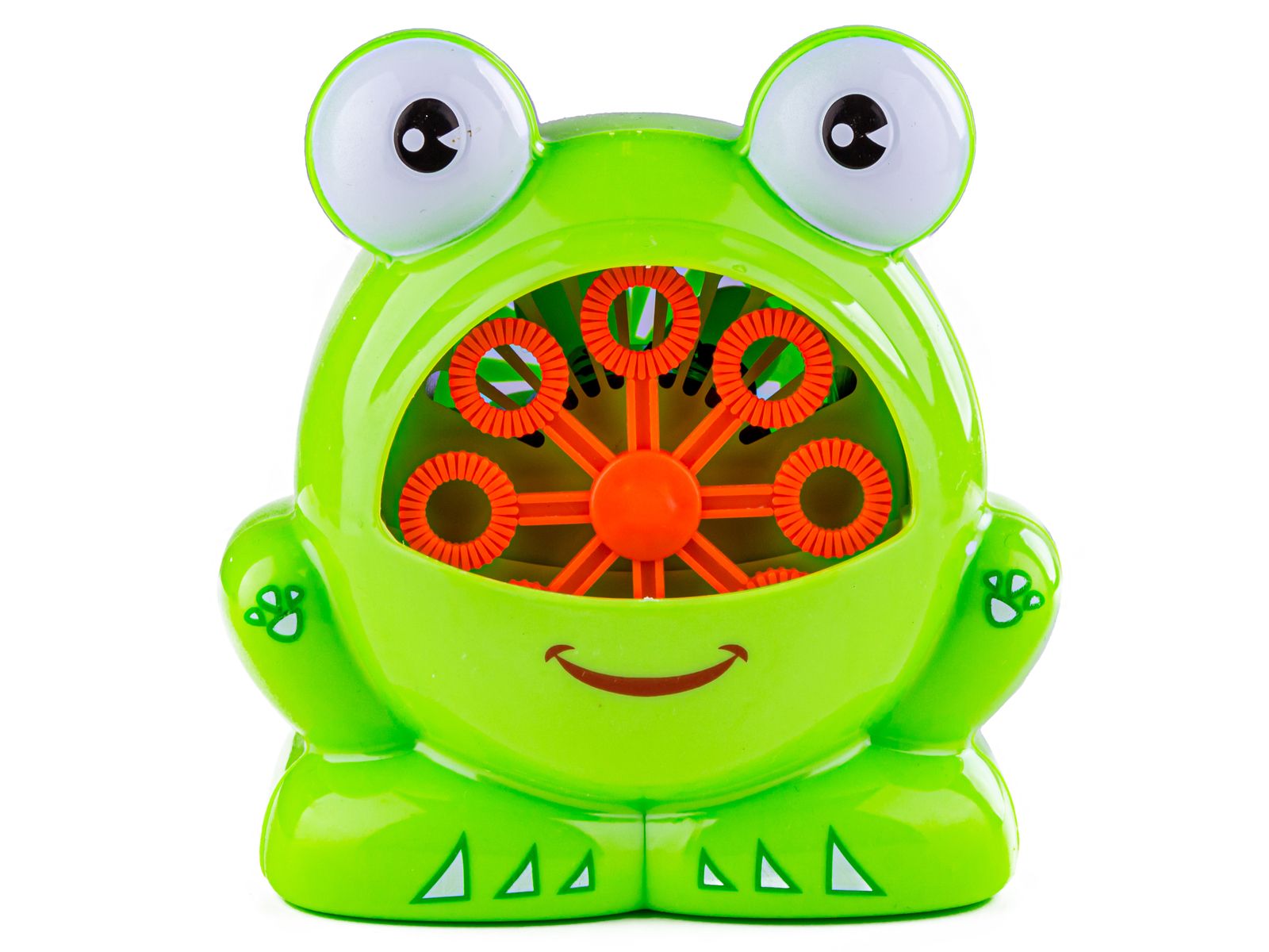 2 proste kroki do super baniekWlej płyn do zagłębienia z przodu zabawki i uruchom maszynkę (przycisk schowany za lewym oczkiem żabki). | ![]() |
