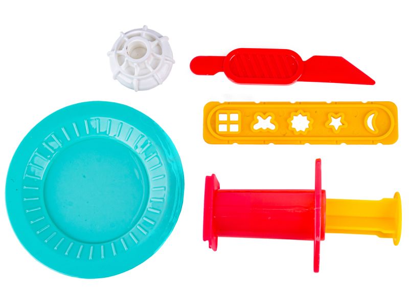 | Ciastolina w kolorze: | pomarańczowym, beżowym, różowym, niebieskim, jasnofioletowym oraz ciemnofioletowym. |