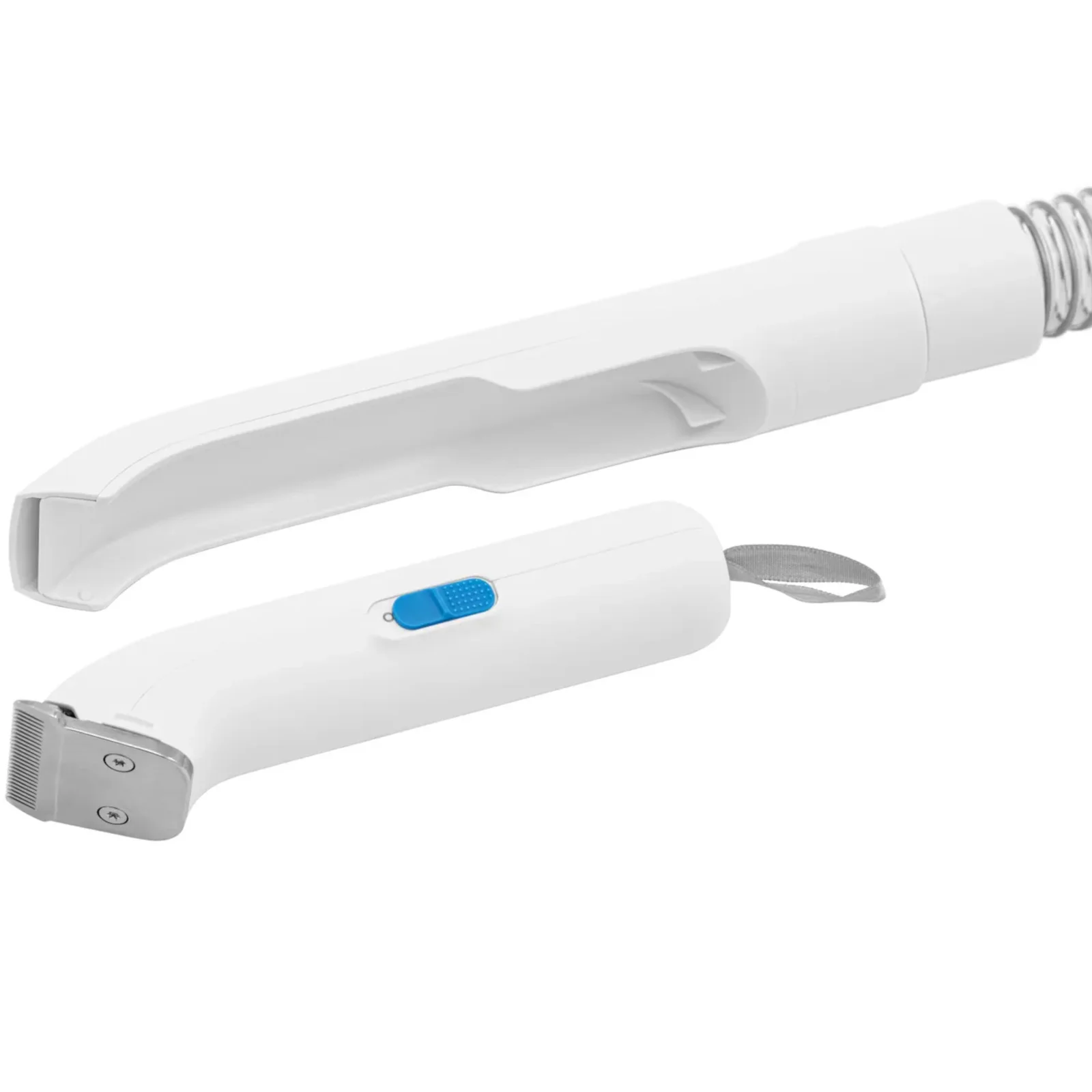 Maszynka dysponuje odkurzaczem o mocy 350 W oraz pojemnością 1,4 l, co pozwala na dłuższe użytkowanie bez konieczności opróżniania zbiornika. Cicha praca urządzenia zapewnia komfort zarówno dla psa, jak i dla osoby strzyżącej. W zestawie znajdują się różne nasadki, takie jak grzebieniowe o długościach 3, 6, 9 i 12 mm, co umożliwia dostosowanie długości strzyżenia do indywidualnych potrzeb.