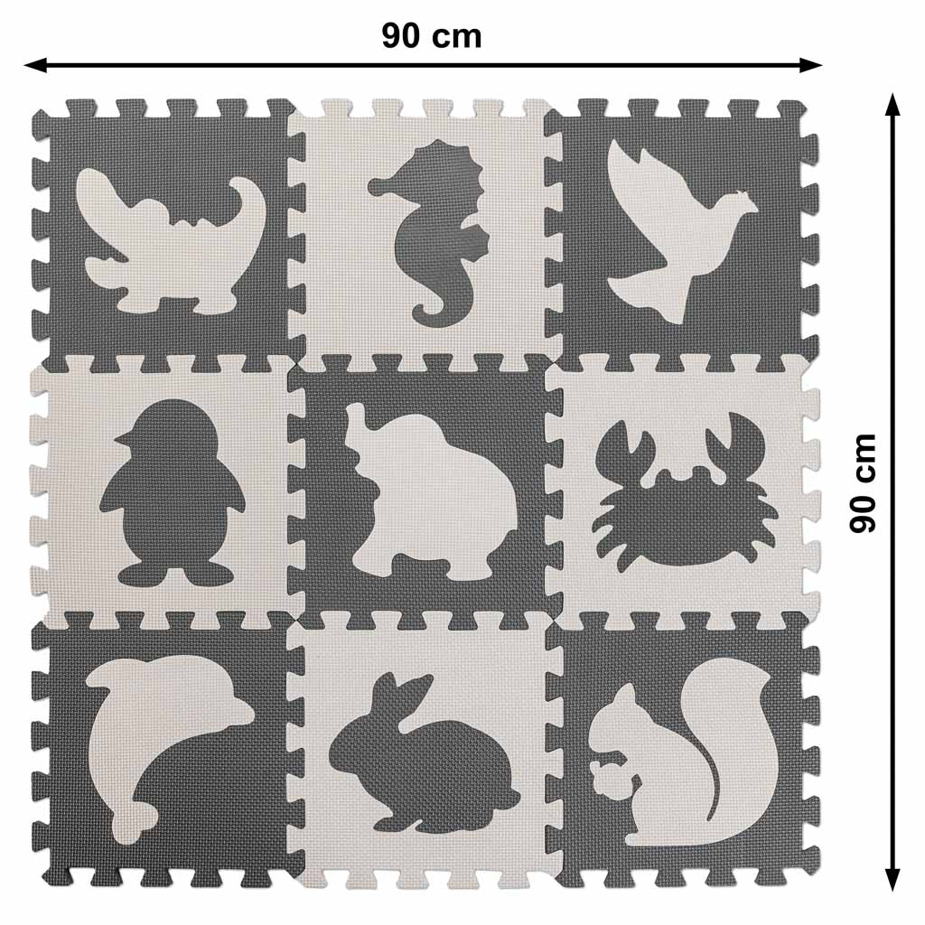 Puzzle wykonane są z sprężystej pianki EVA, co zapewnia ich trwałość. Antypoślizgowa powierzchnia oraz wodoodporność to dodatkowe atuty, które podnoszą komfort zabawy. Oryginalny design sprawia, że mata doskonale wkomponuje się w wystrój pokoju dziecięcego, zastępując tradycyjny dywan.