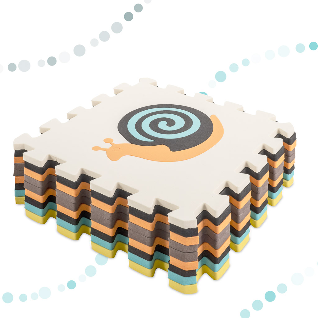 Mata ma wymiary 85 x 85 cm, a każdy z puzzli mierzy 30 x 30 cm. Wykonana jest z miękkiej, sprężystej pianki EVA, co zapewnia amortyzację podczas zabawy oraz izolację od chłodu. Dzięki temu, maluchy mogą bezpiecznie stawiać pierwsze kroki.