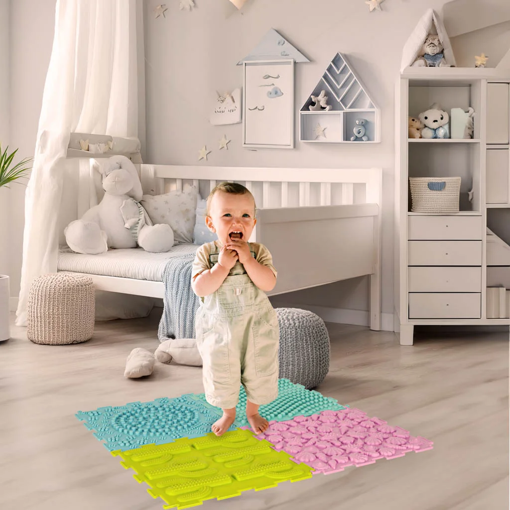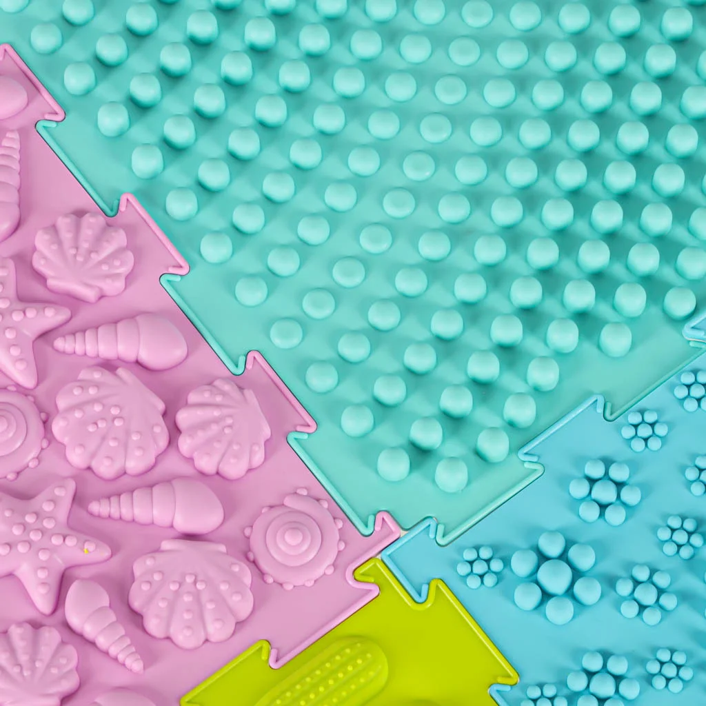 Profilaktyka fizjoterapeutyczna – zróżnicowane podłoże maty wspiera prawidłową postawę oraz przynosi ulgę przy dolegliwościach stóp, co czyni ją doskonałym wyborem zarówno do zabawy, jak i terapii.