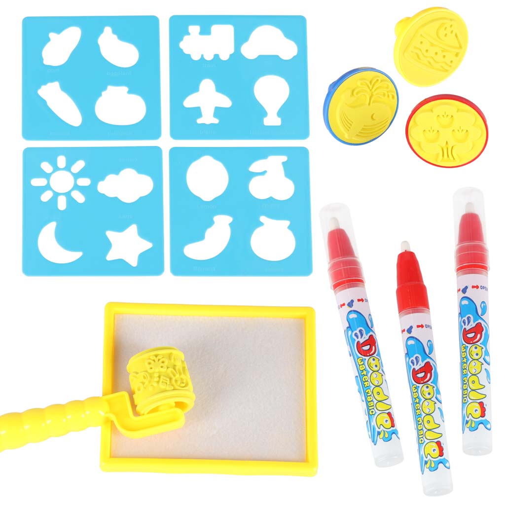 • Bogaty komplet akcesoriów - w zestawie znajdują się pisaki wodne, szablony i dodatki, które urozmaicają twórcze zajęcia