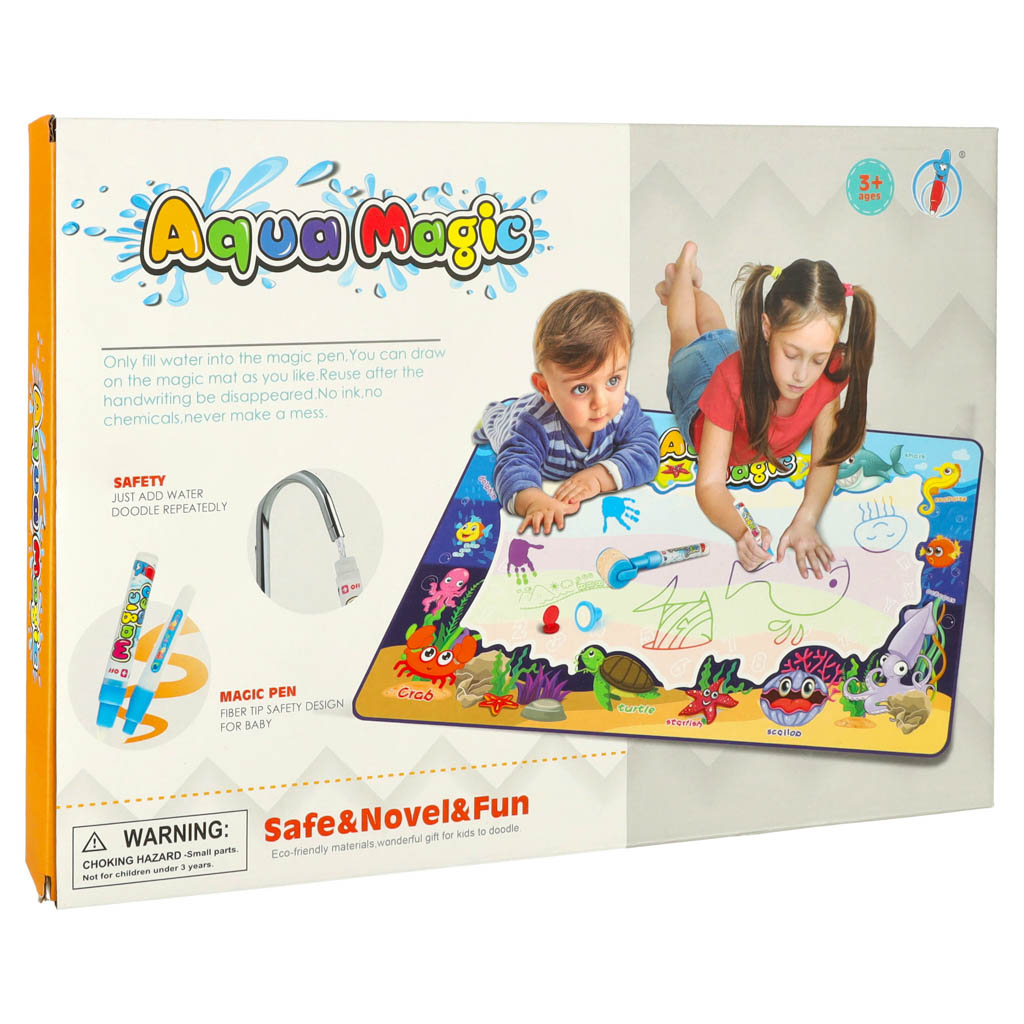 Dzięki dużej powierzchni 100 cm x 80 cm, dzieci mają mnóstwo miejsca na twórcze rysowanie. Nie musisz martwić się o plamy czy zabrudzenia, ponieważ do malowania wystarczy woda. W zestawie znajduje się mazak, który wystarczy napełnić wodą.