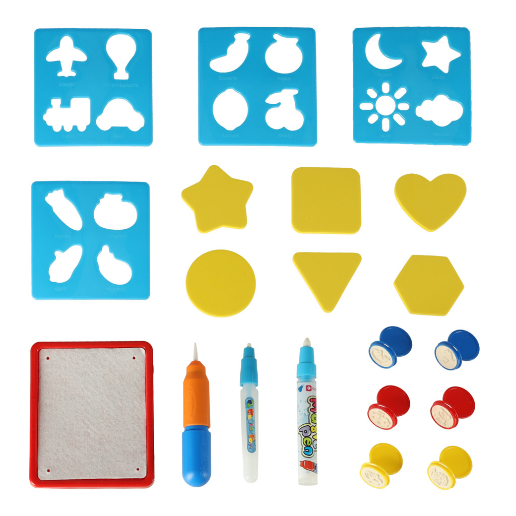 Po zmoczeniu maty, odkryjesz kolorowy obrazek, a dzięki dołączonym szablonom i stempelkom, maluchy mogą odrysowywać różne kształty. Rysowanie na macie rozwija zdolności manualne oraz koordynację ruchową.